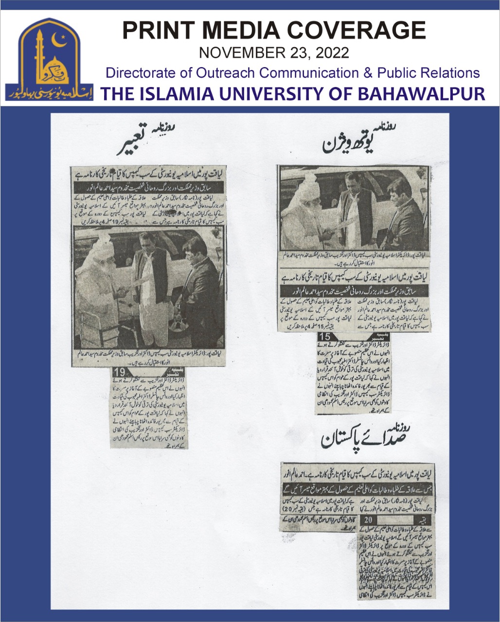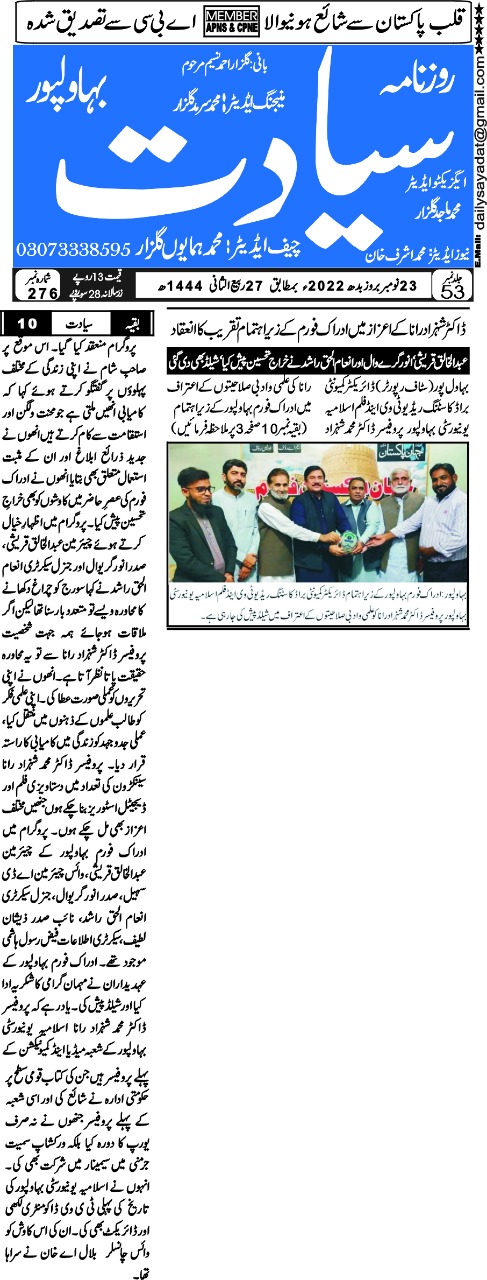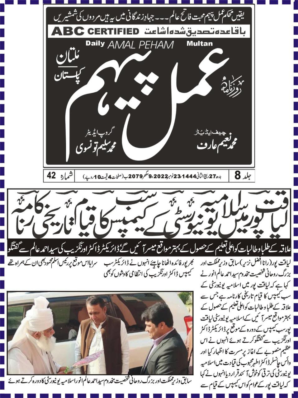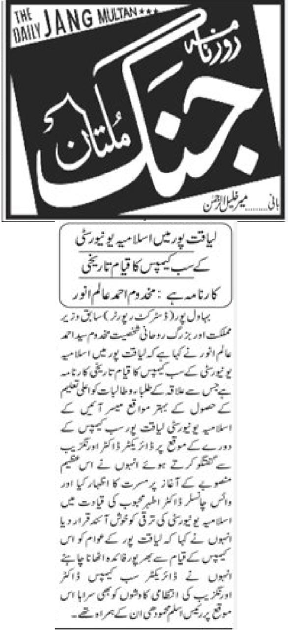 The Islamia University of Bahawalpur was established in the year 1975 by upgrading historical institute of the Jamia Abbasia.