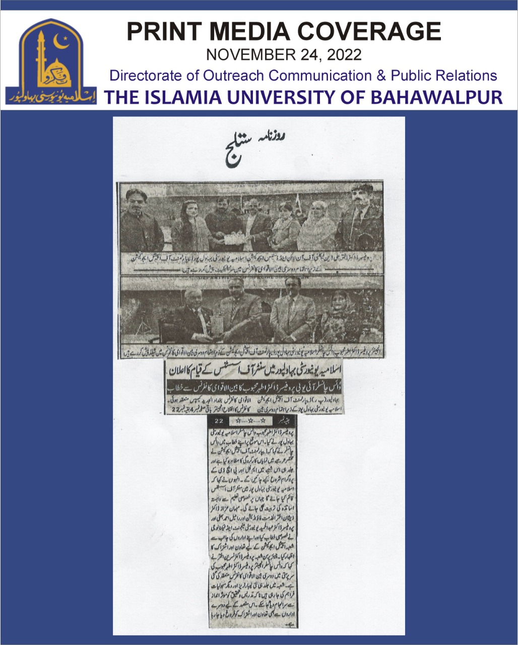 The Islamia University of Bahawalpur was established in the year 1975 by upgrading historical institute of the Jamia Abbasia.