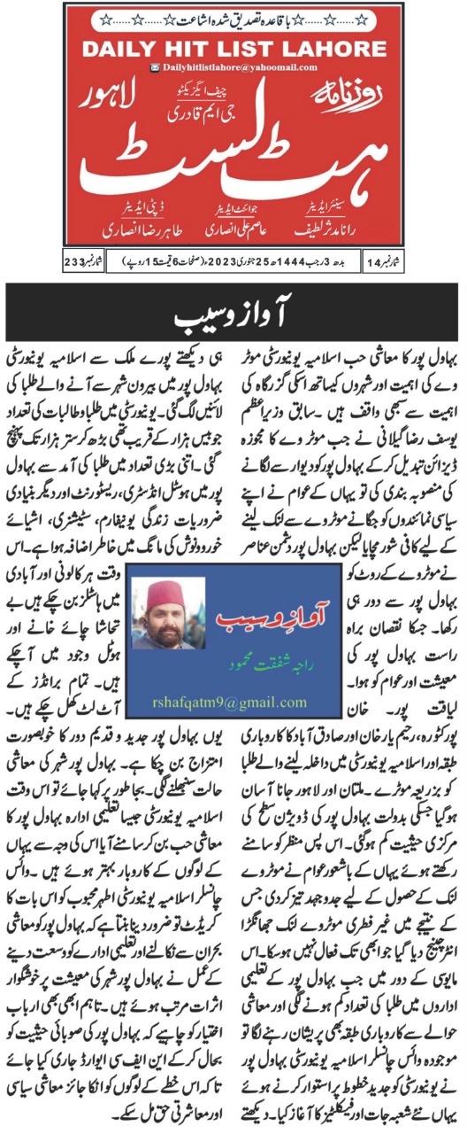 The Islamia University of Bahawalpur was established in the year 1975 by upgrading historical institute of the Jamia Abbasia.