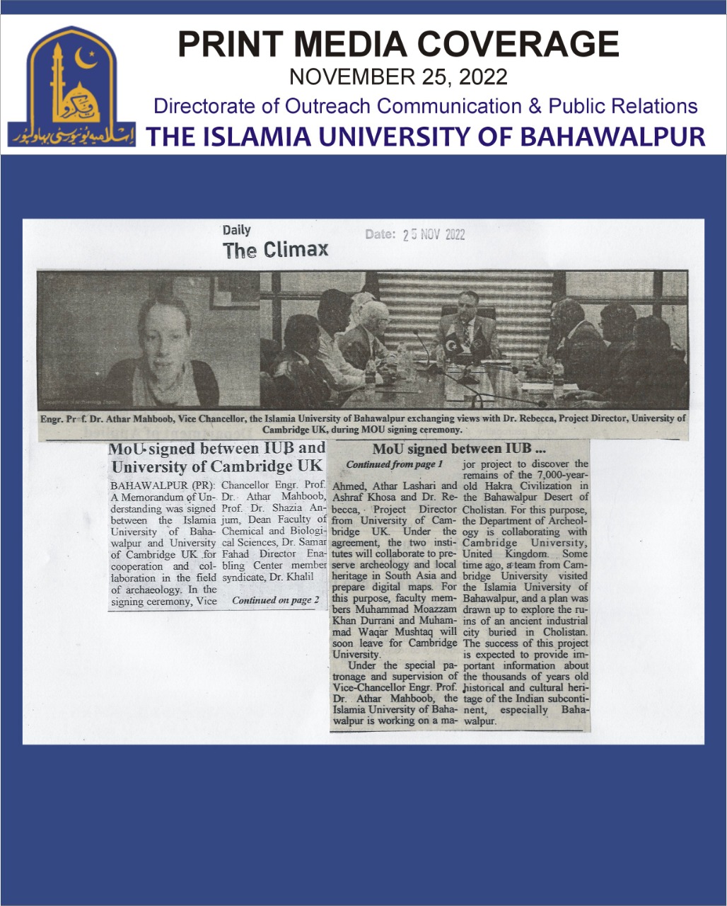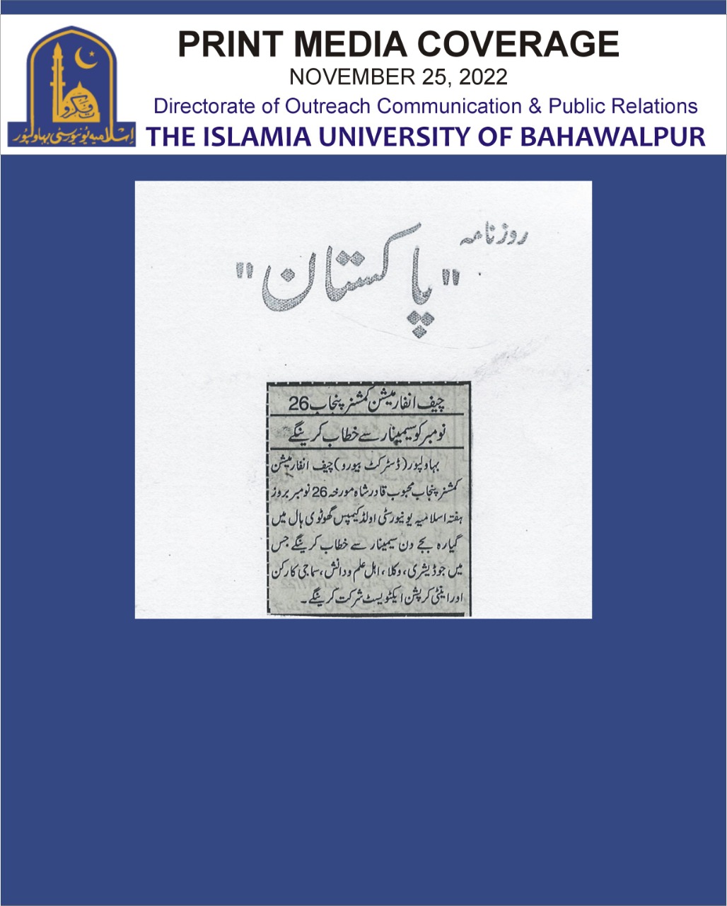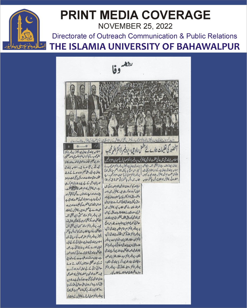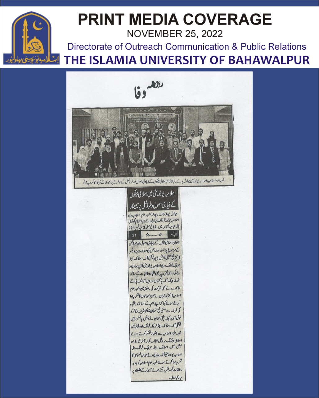 The Islamia University of Bahawalpur was established in the year 1975 by upgrading historical institute of the Jamia Abbasia.