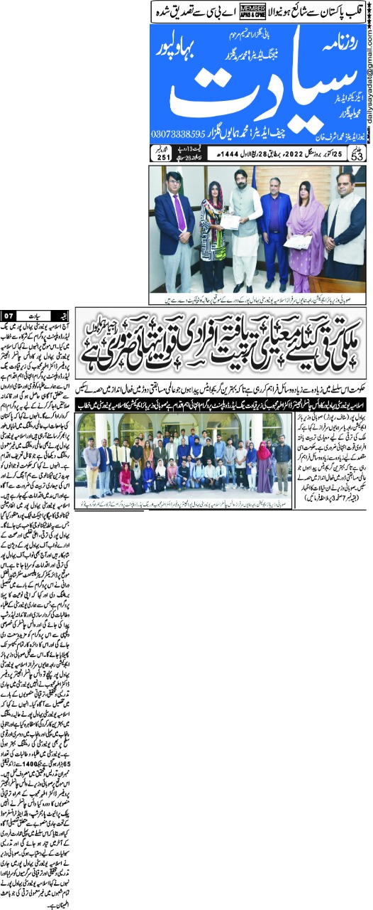 The Islamia University of Bahawalpur was established in the year 1975 by upgrading historical institute of the Jamia Abbasia.