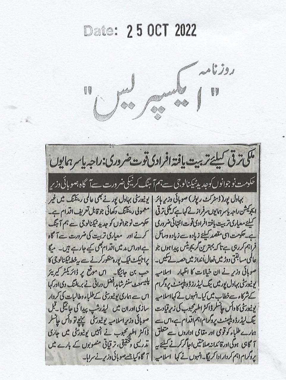 News Cutting 25 October 2022