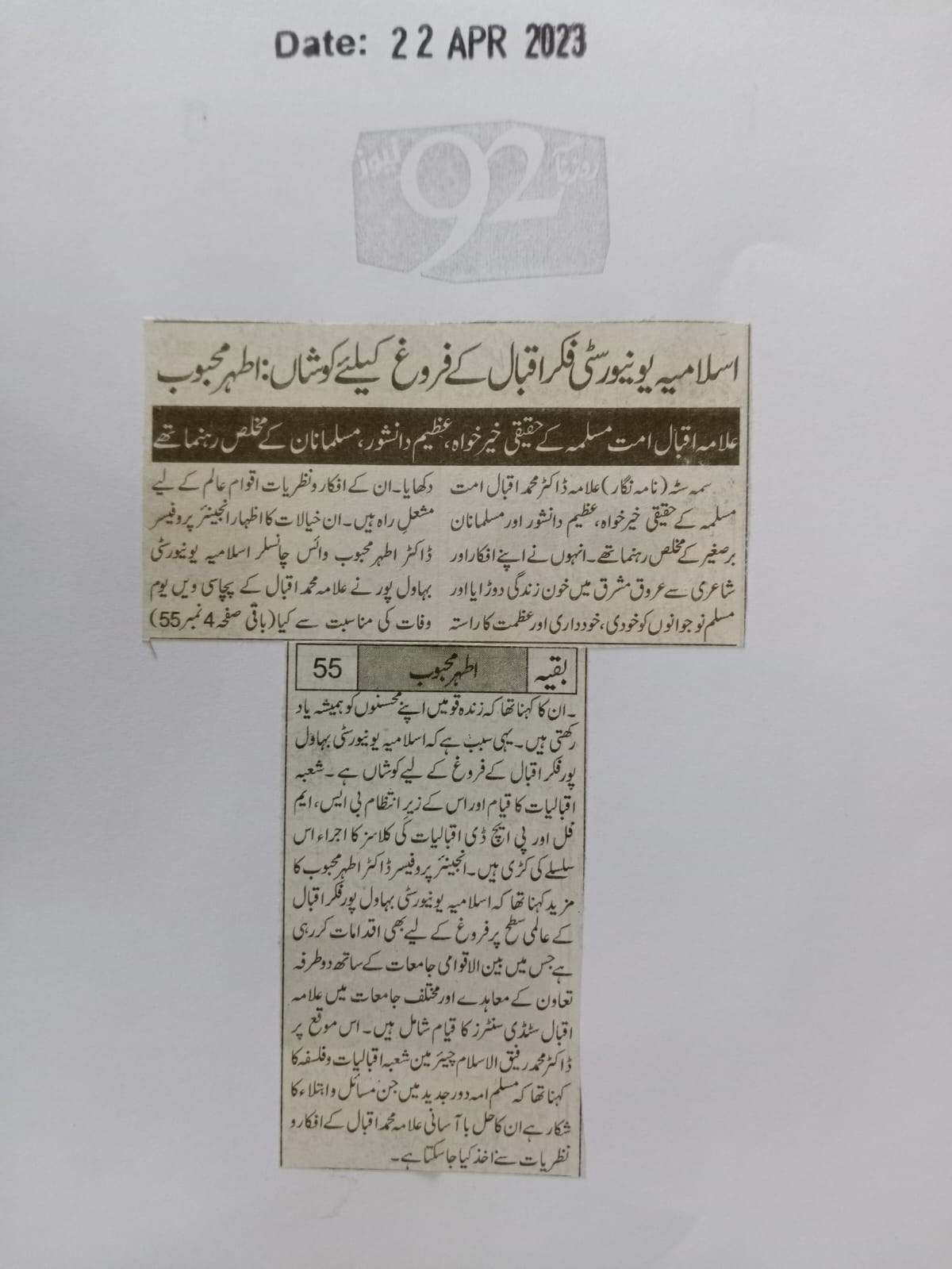 The Islamia University of Bahawalpur was established in the year 1975 by upgrading historical institute of the Jamia Abbasia.