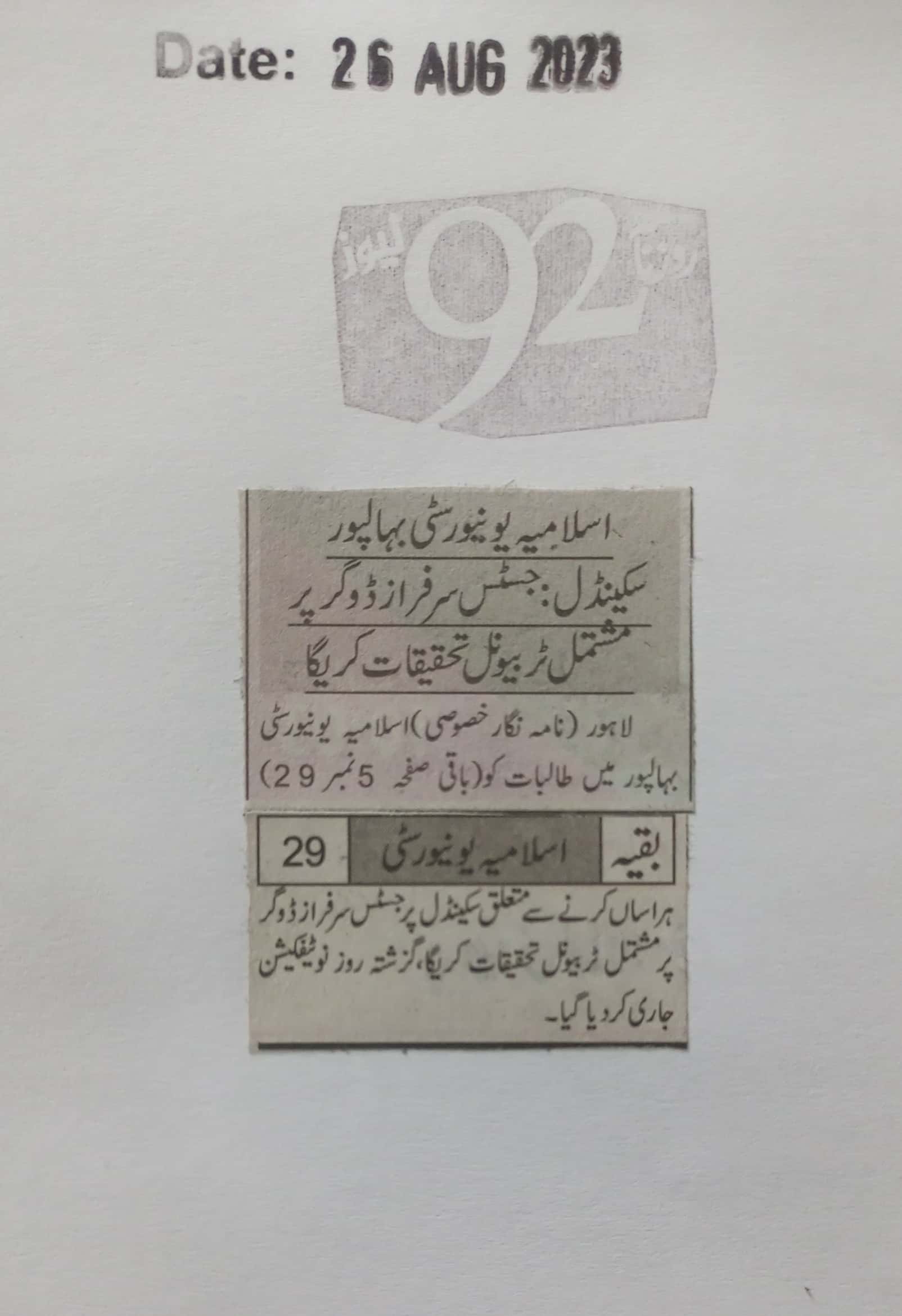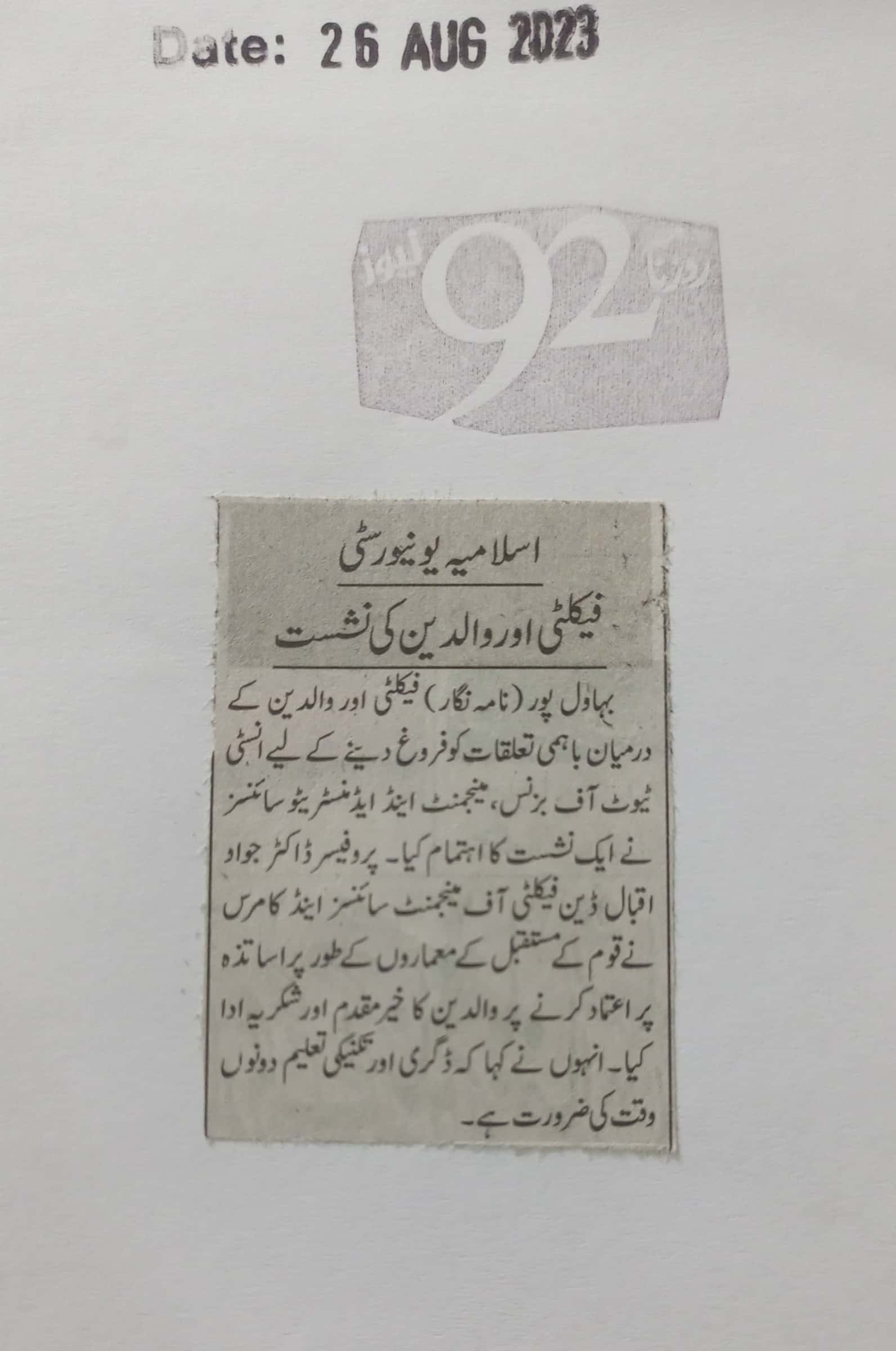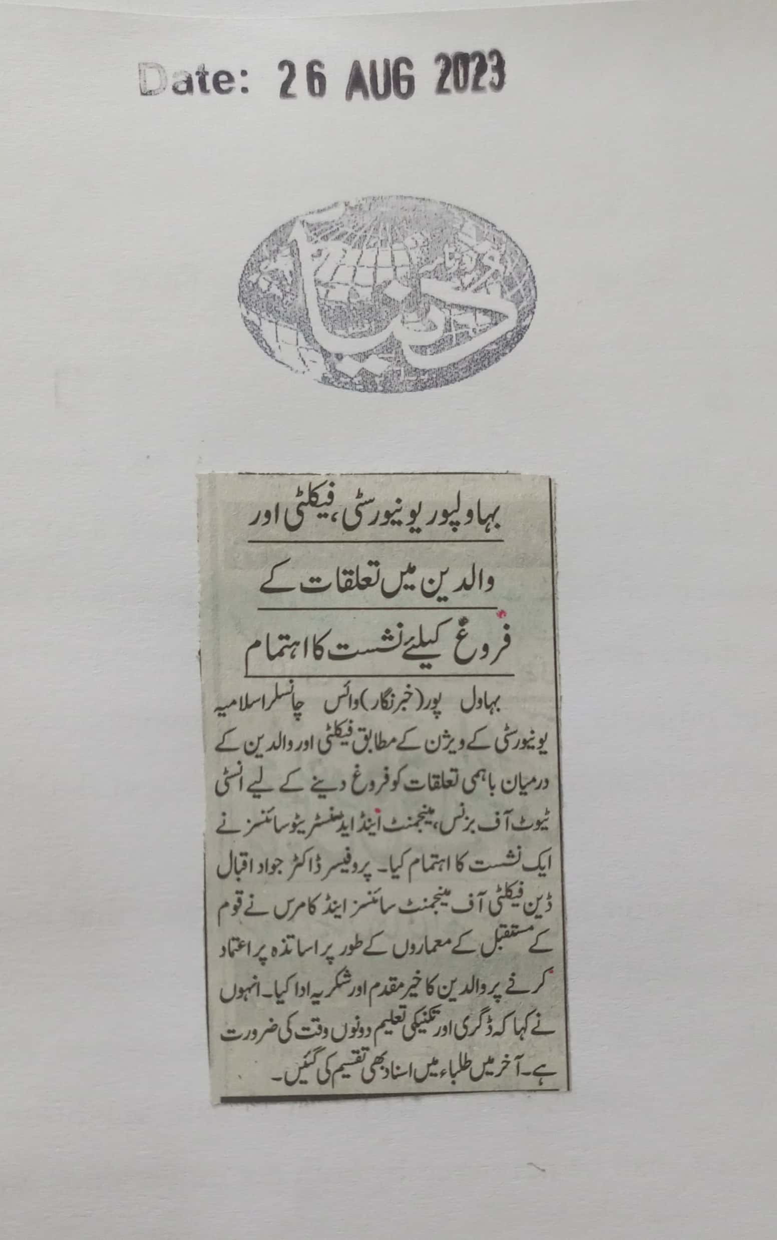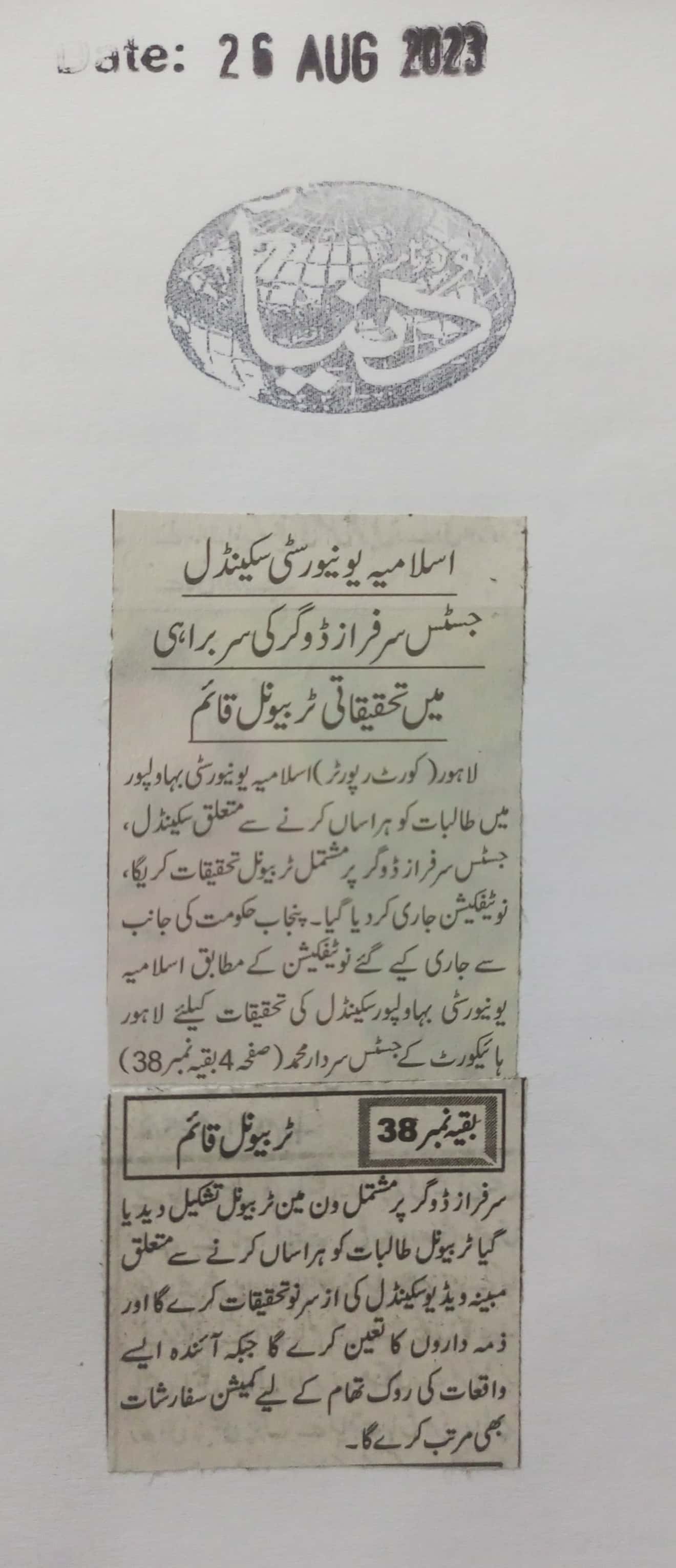 News Cutting 26 August 2023