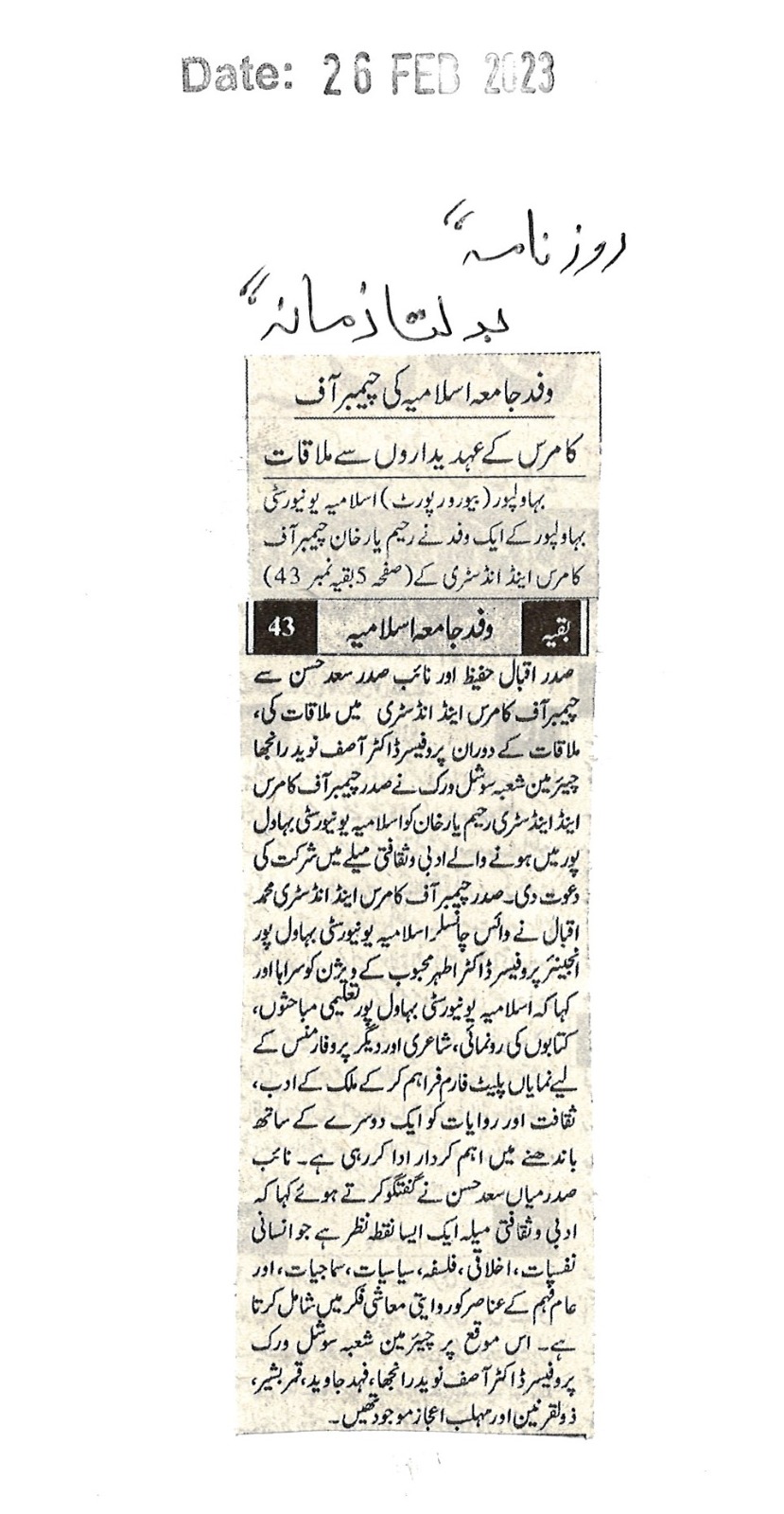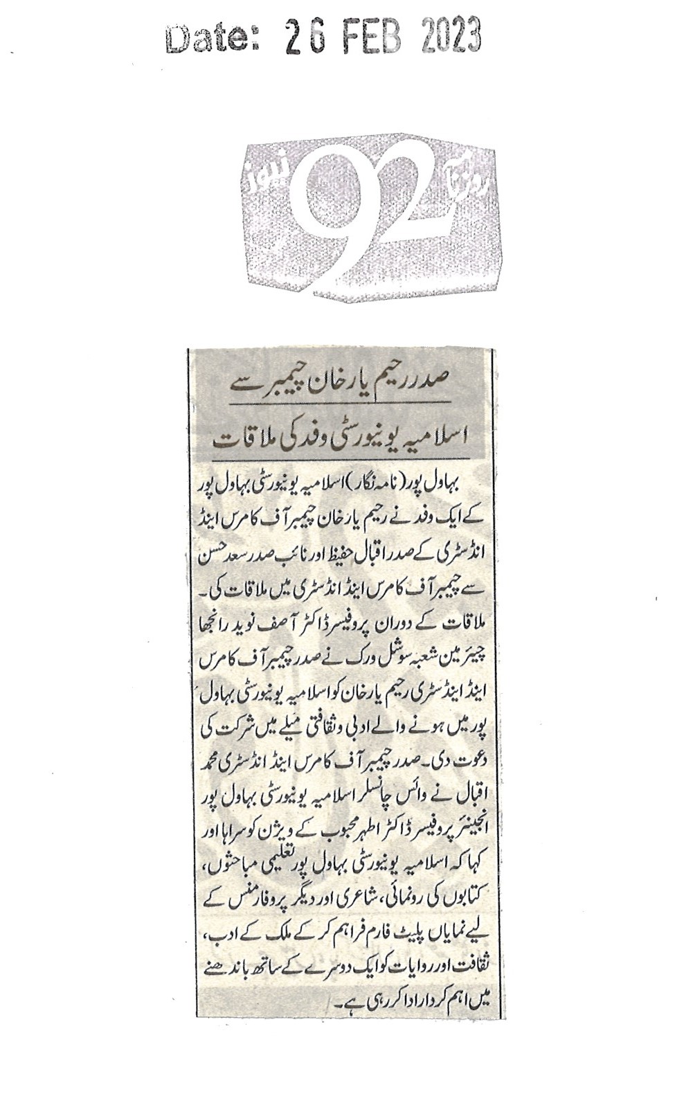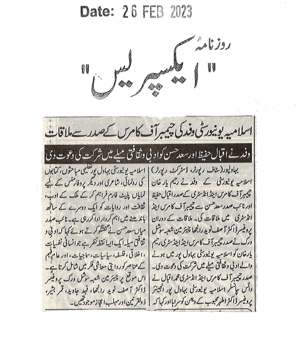 News Cutting 26 February 2023
