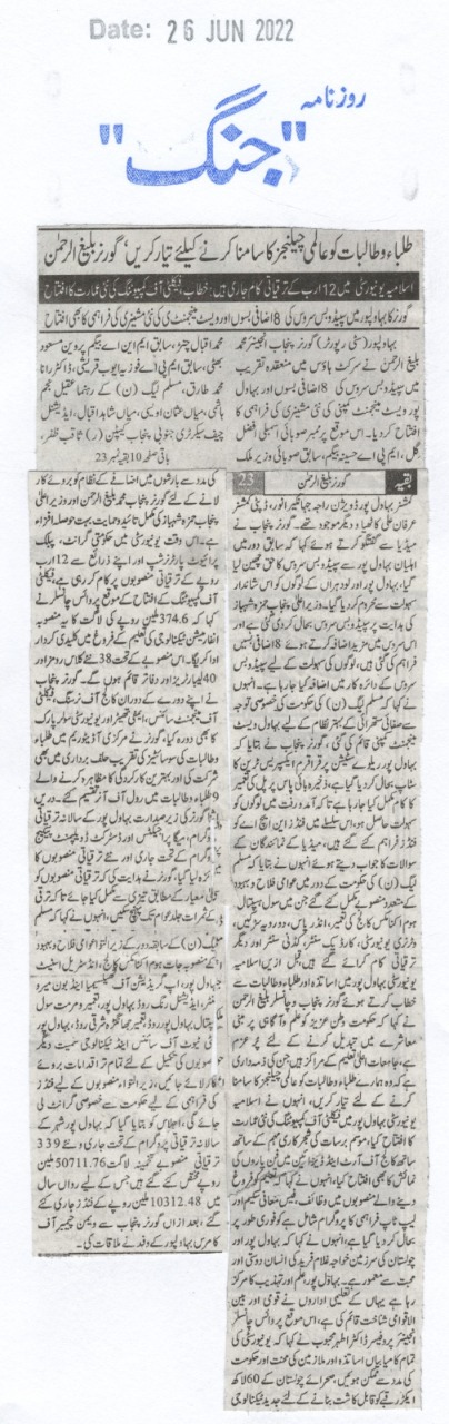 The Islamia University of Bahawalpur was established in the year 1975 by upgrading historical institute of the Jamia Abbasia.