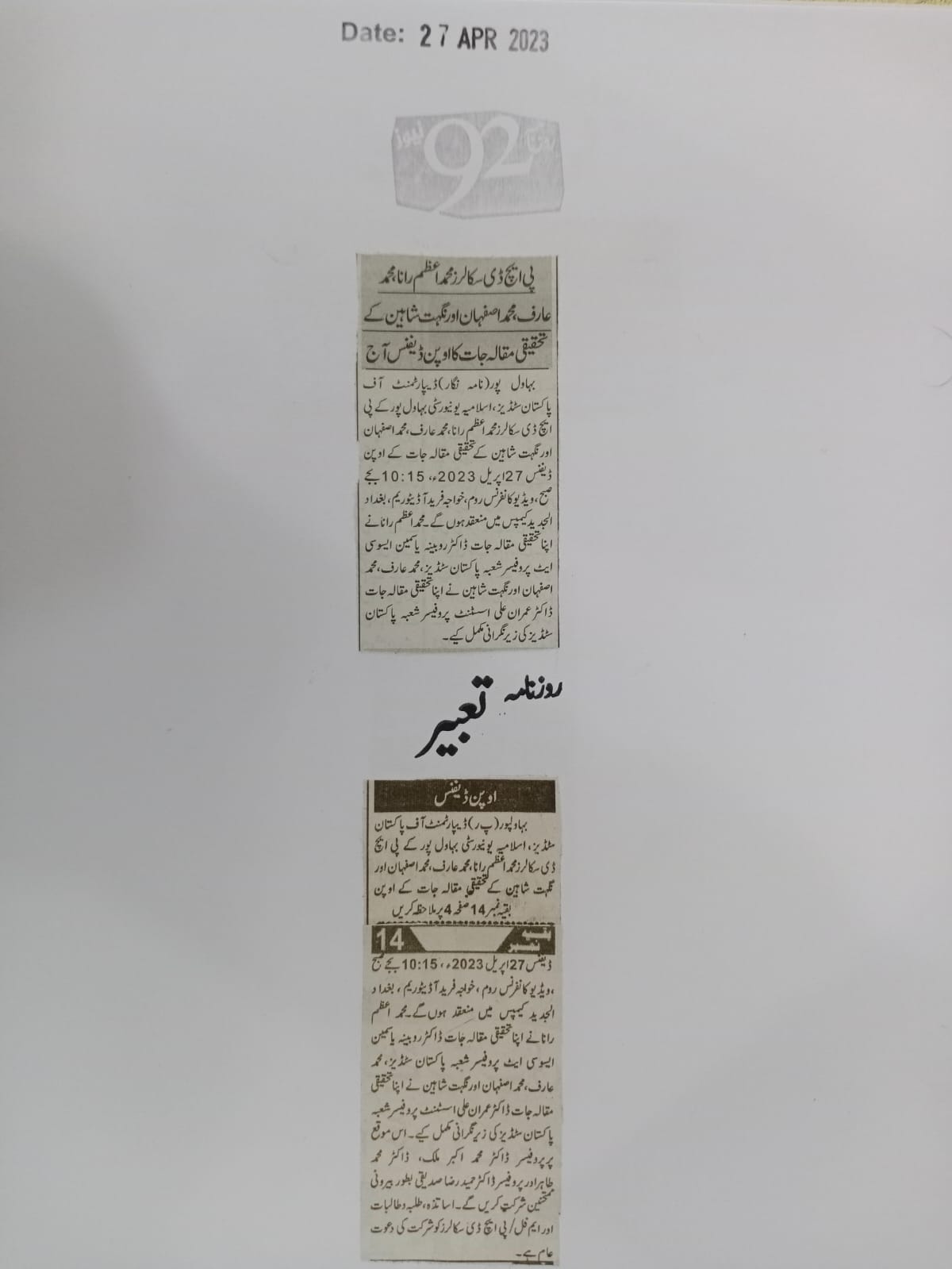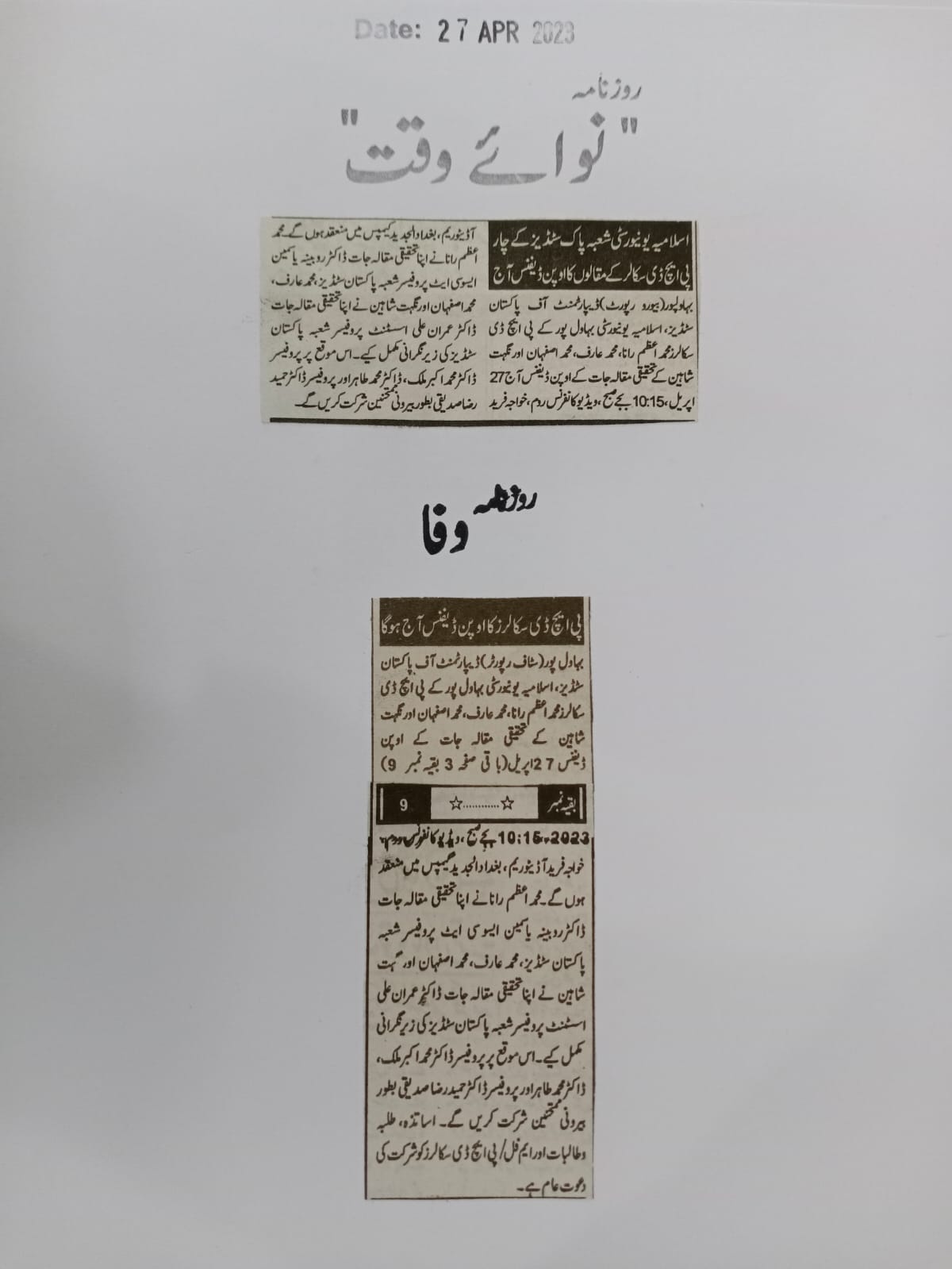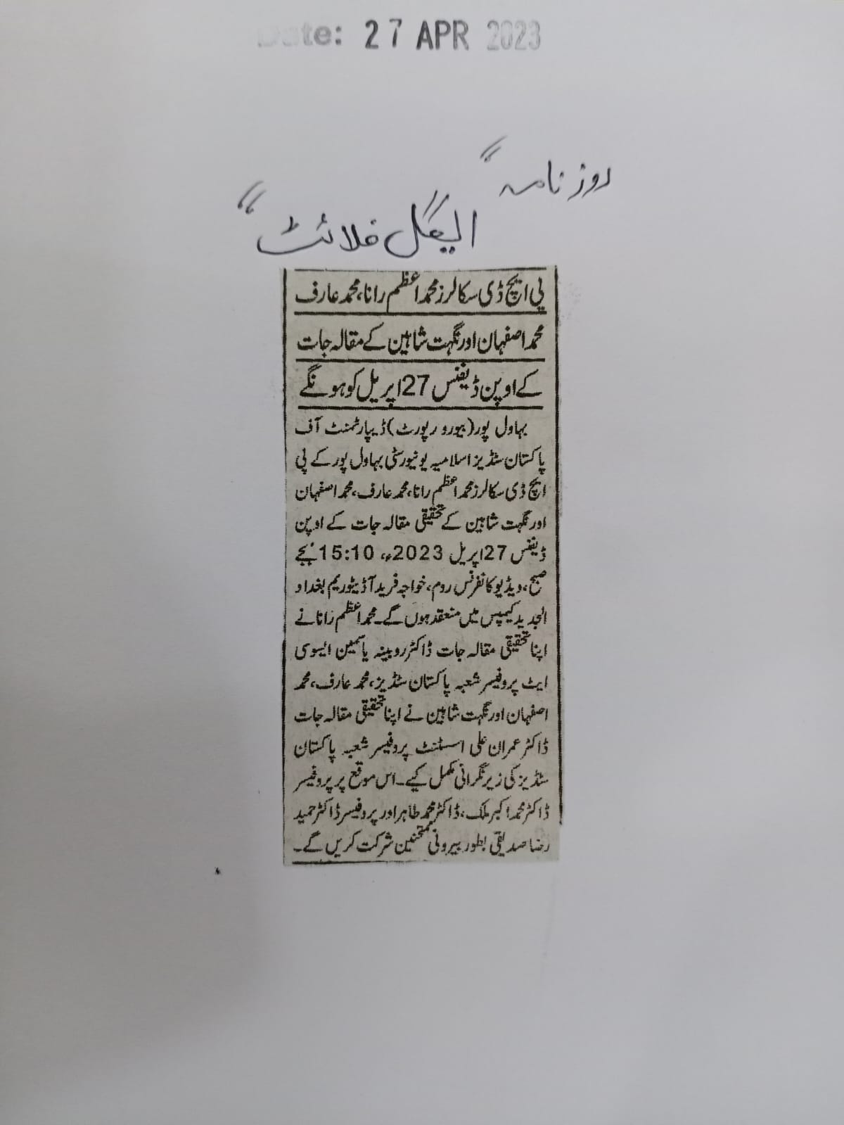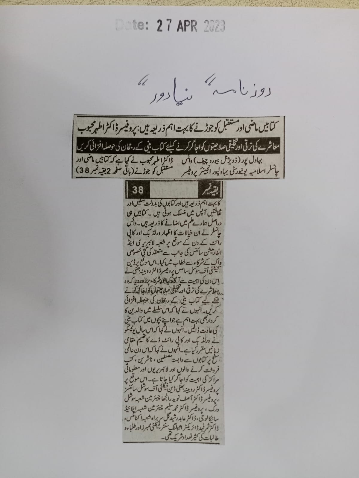 News Cutting 27 April 2023