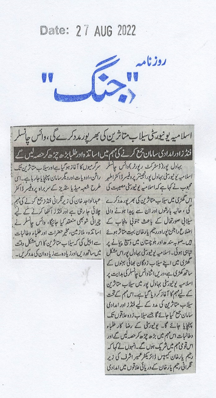 The Islamia University of Bahawalpur was established in the year 1975 by upgrading historical institute of the Jamia Abbasia.