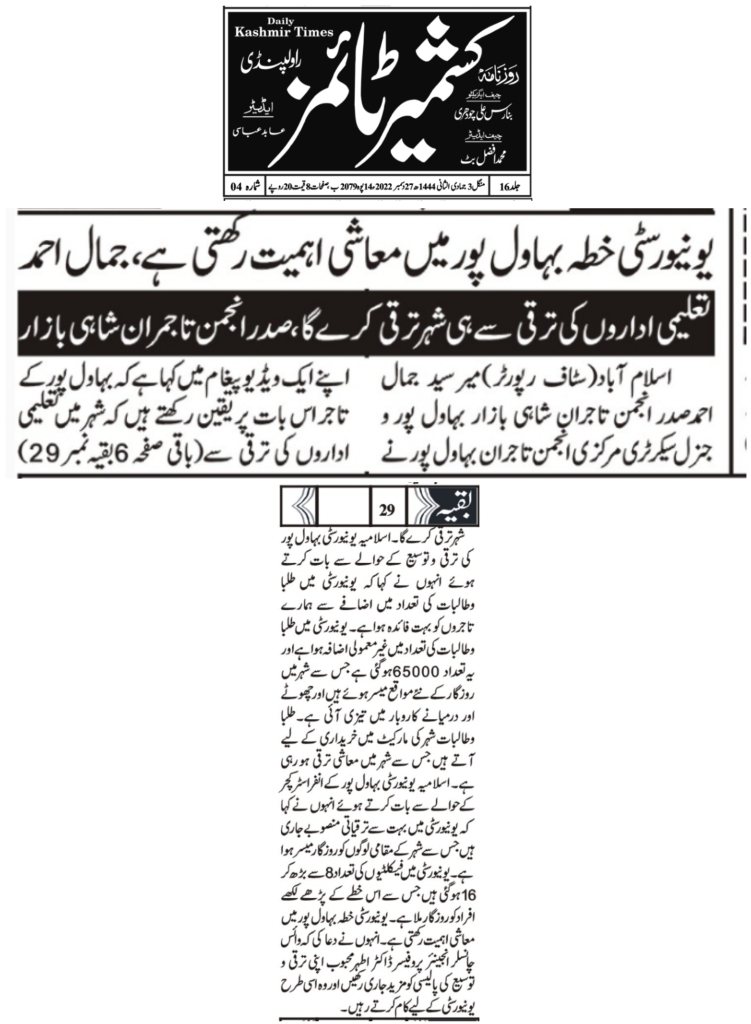 The Islamia University of Bahawalpur was established in the year 1975 by upgrading historical institute of the Jamia Abbasia.