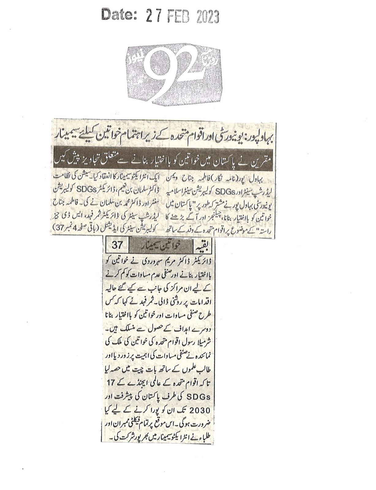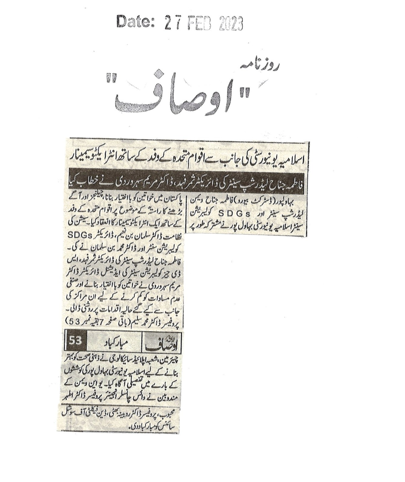 News Cutting 27 February 2023