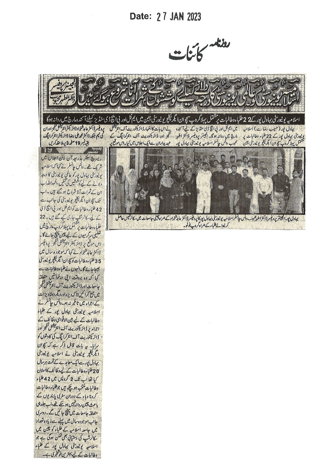 The Islamia University of Bahawalpur was established in the year 1975 by upgrading historical institute of the Jamia Abbasia.