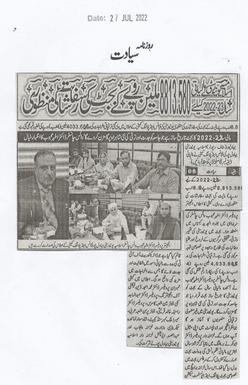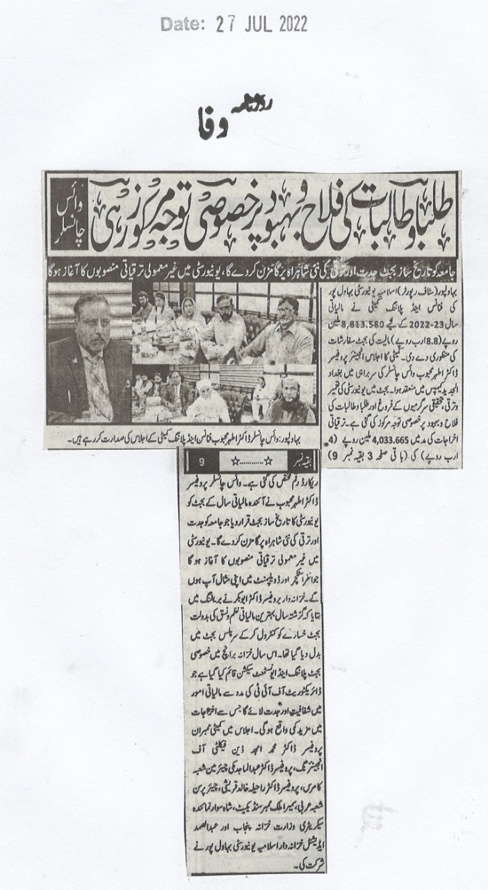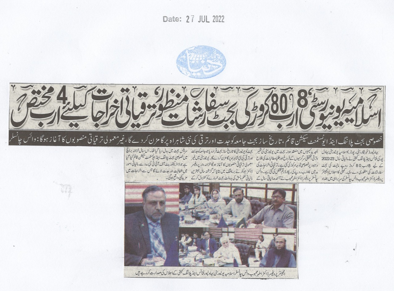 The Islamia University of Bahawalpur was established in the year 1975 by upgrading historical institute of the Jamia Abbasia.