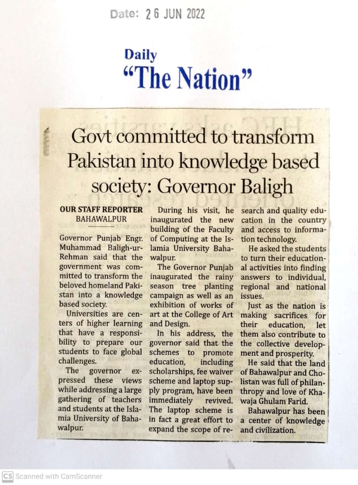 The Islamia University of Bahawalpur was established in the year 1975 by upgrading historical institute of the Jamia Abbasia.