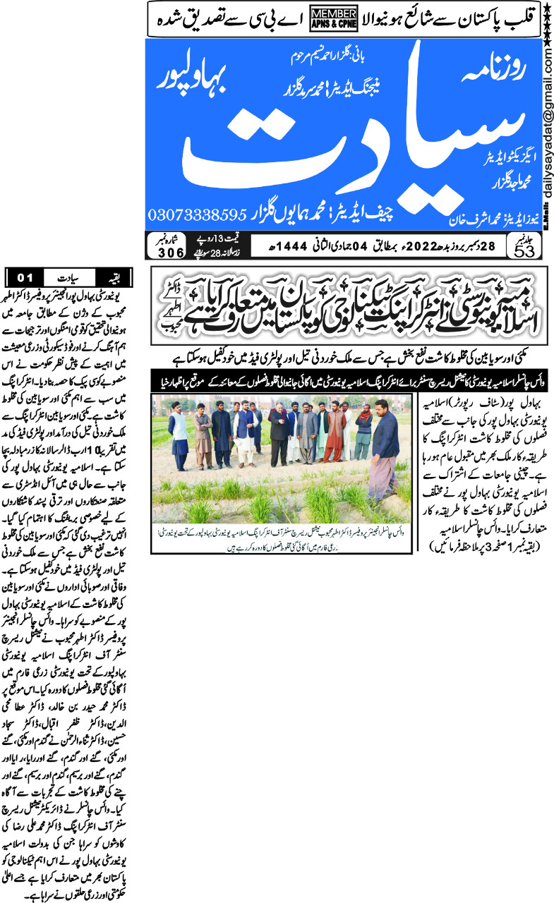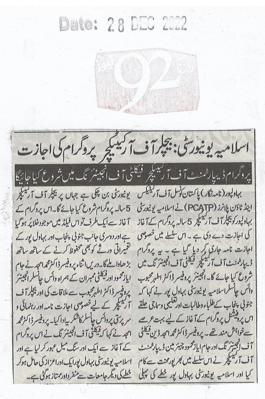 The Islamia University of Bahawalpur was established in the year 1975 by upgrading historical institute of the Jamia Abbasia.
