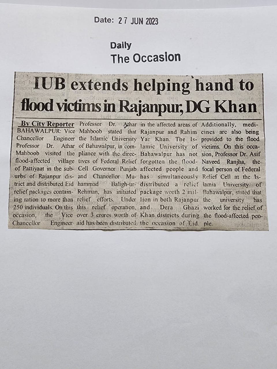 News Cutting 28 June 2023