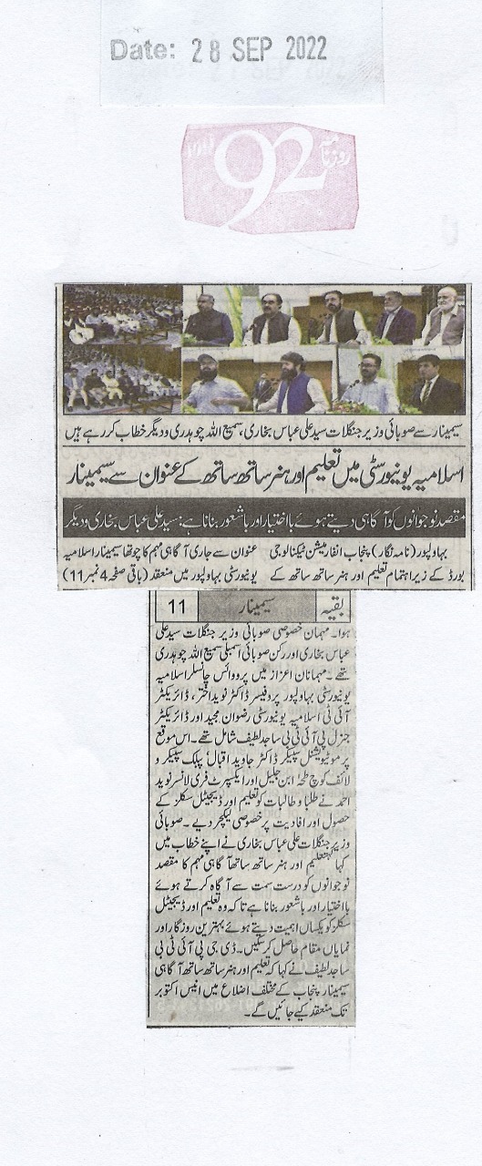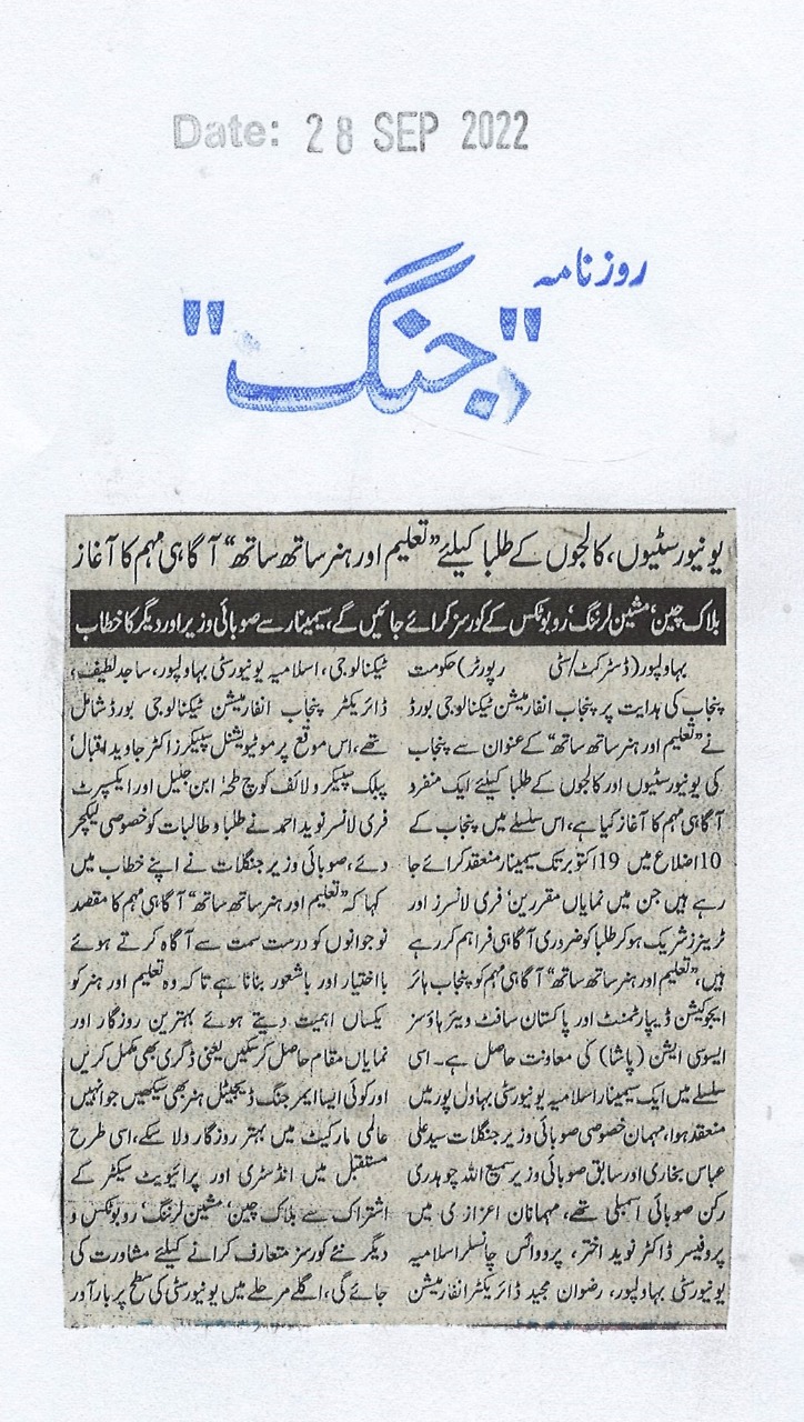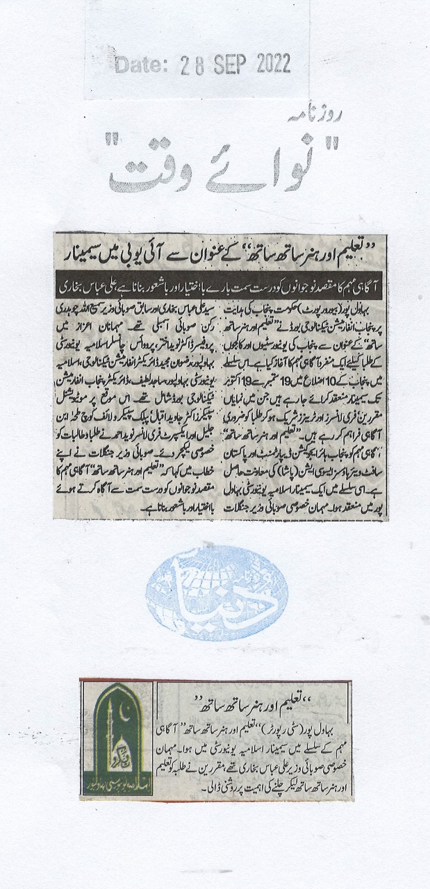 The Islamia University of Bahawalpur was established in the year 1975 by upgrading historical institute of the Jamia Abbasia.
