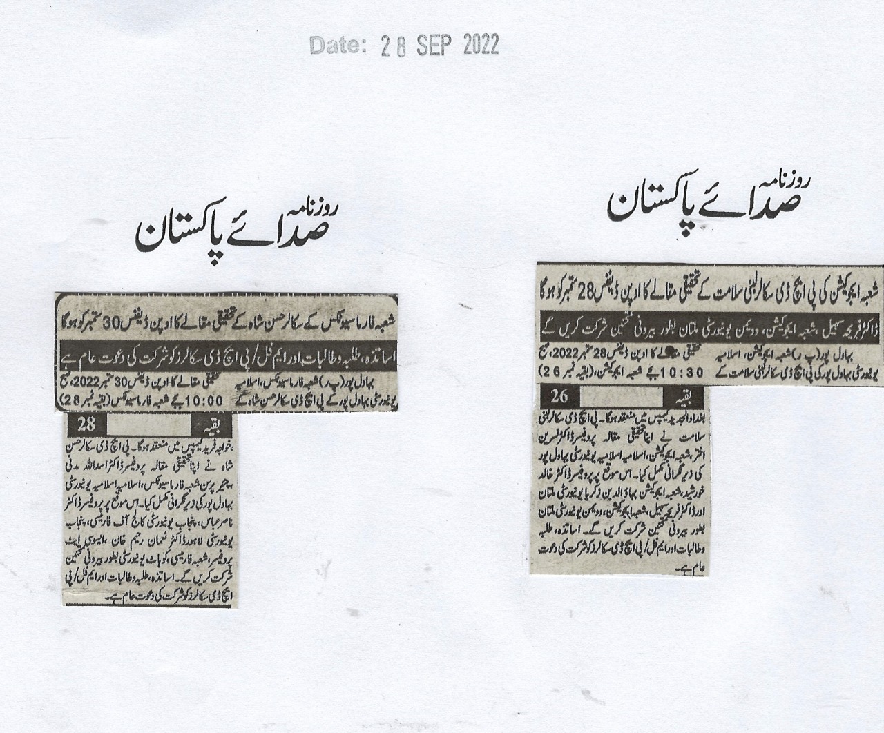 News Cutting 28 September 2022