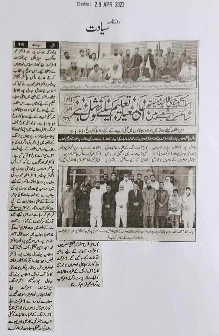 The Islamia University of Bahawalpur was established in the year 1975 by upgrading historical institute of the Jamia Abbasia.