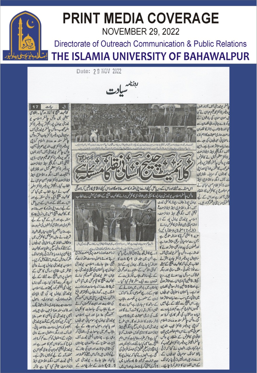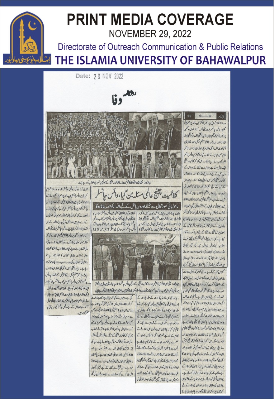 The Islamia University of Bahawalpur was established in the year 1975 by upgrading historical institute of the Jamia Abbasia.