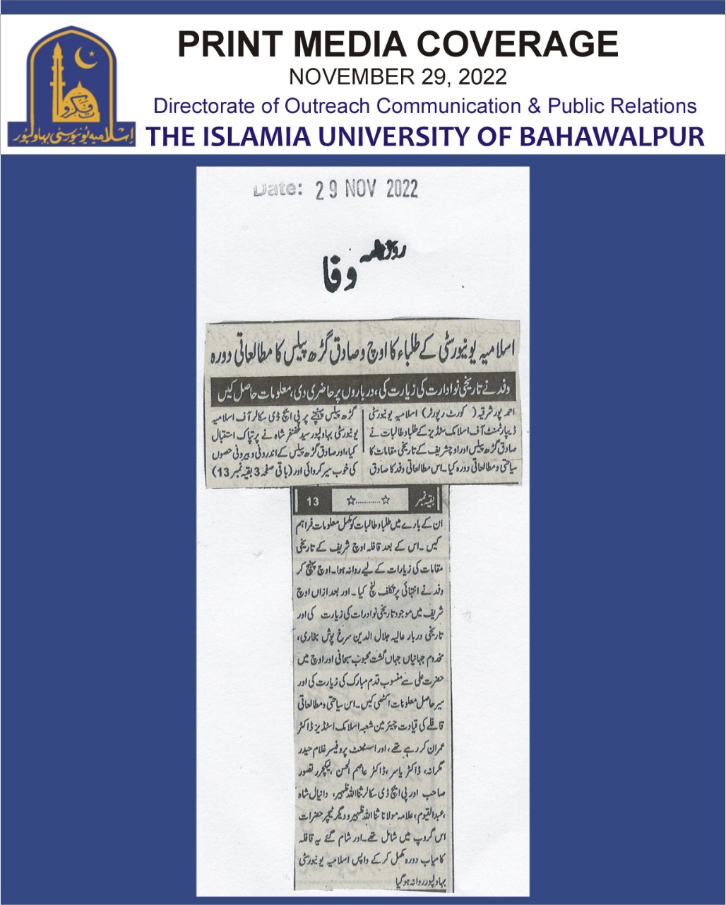 News Cutting 29 November 2022
