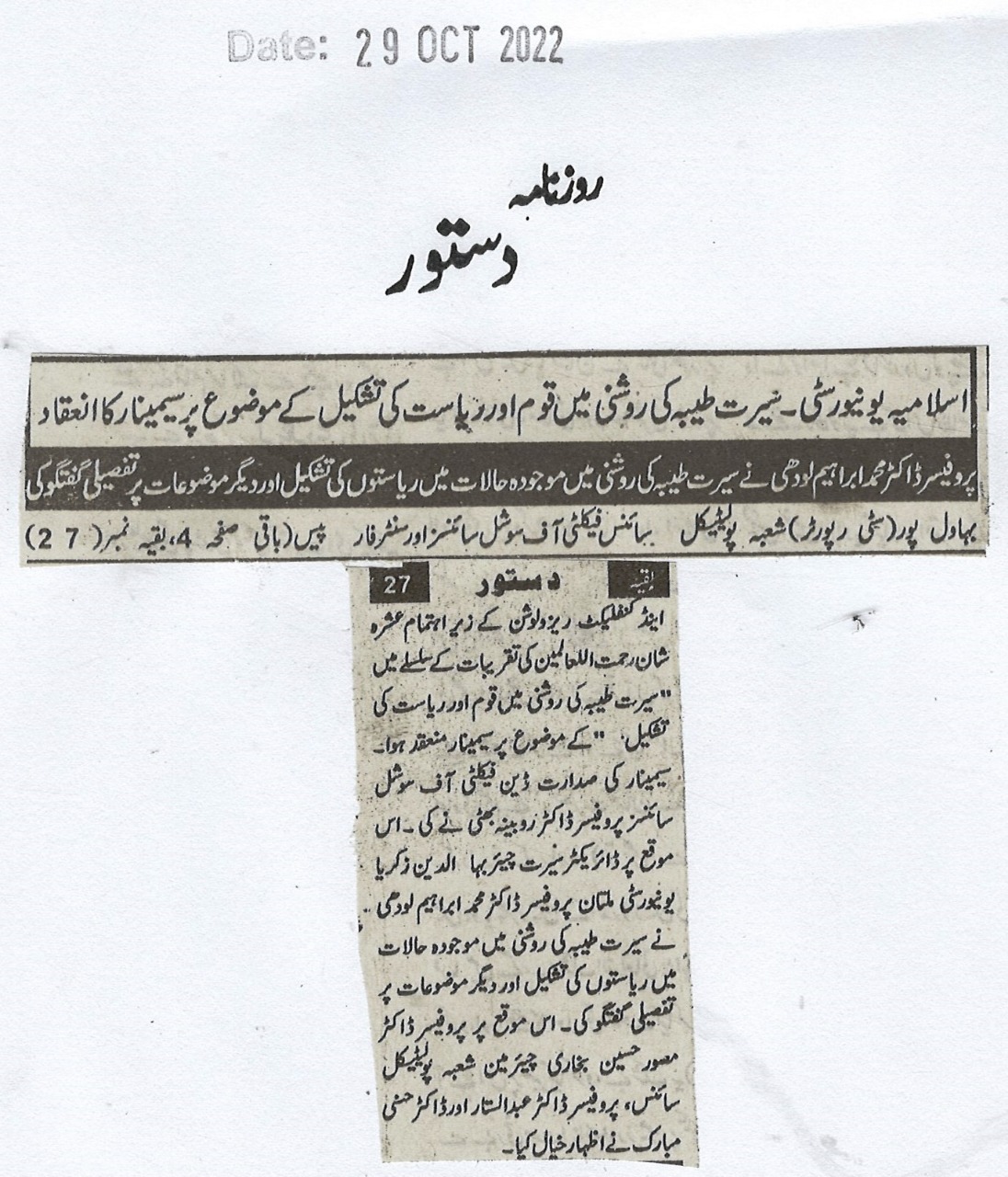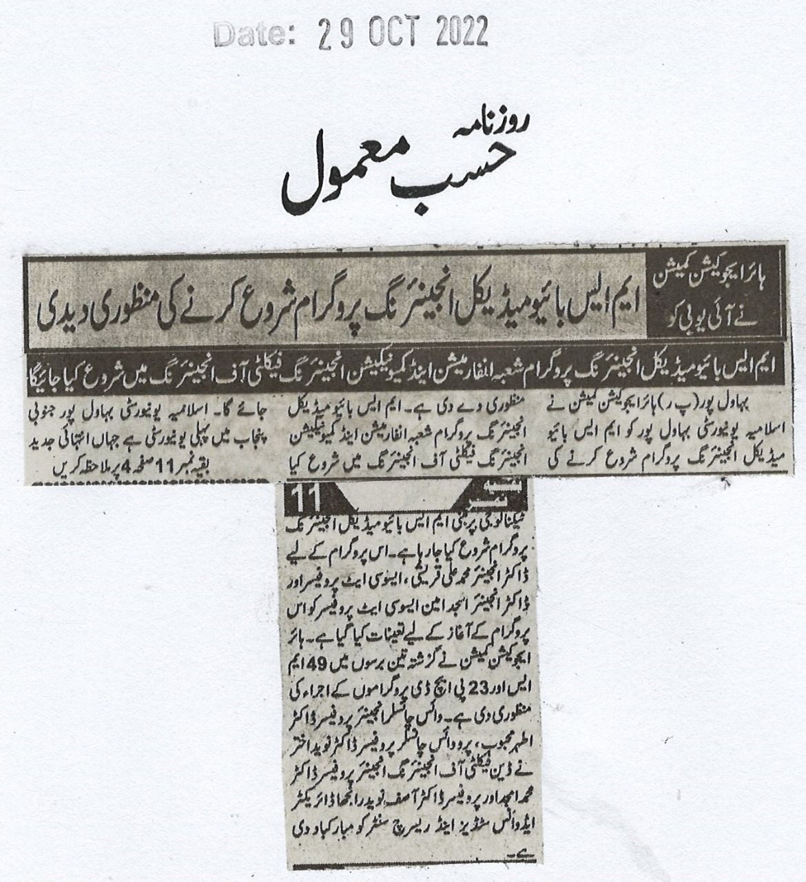 News Cutting 29 October 2022