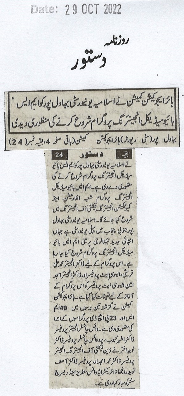 The Islamia University of Bahawalpur was established in the year 1975 by upgrading historical institute of the Jamia Abbasia.