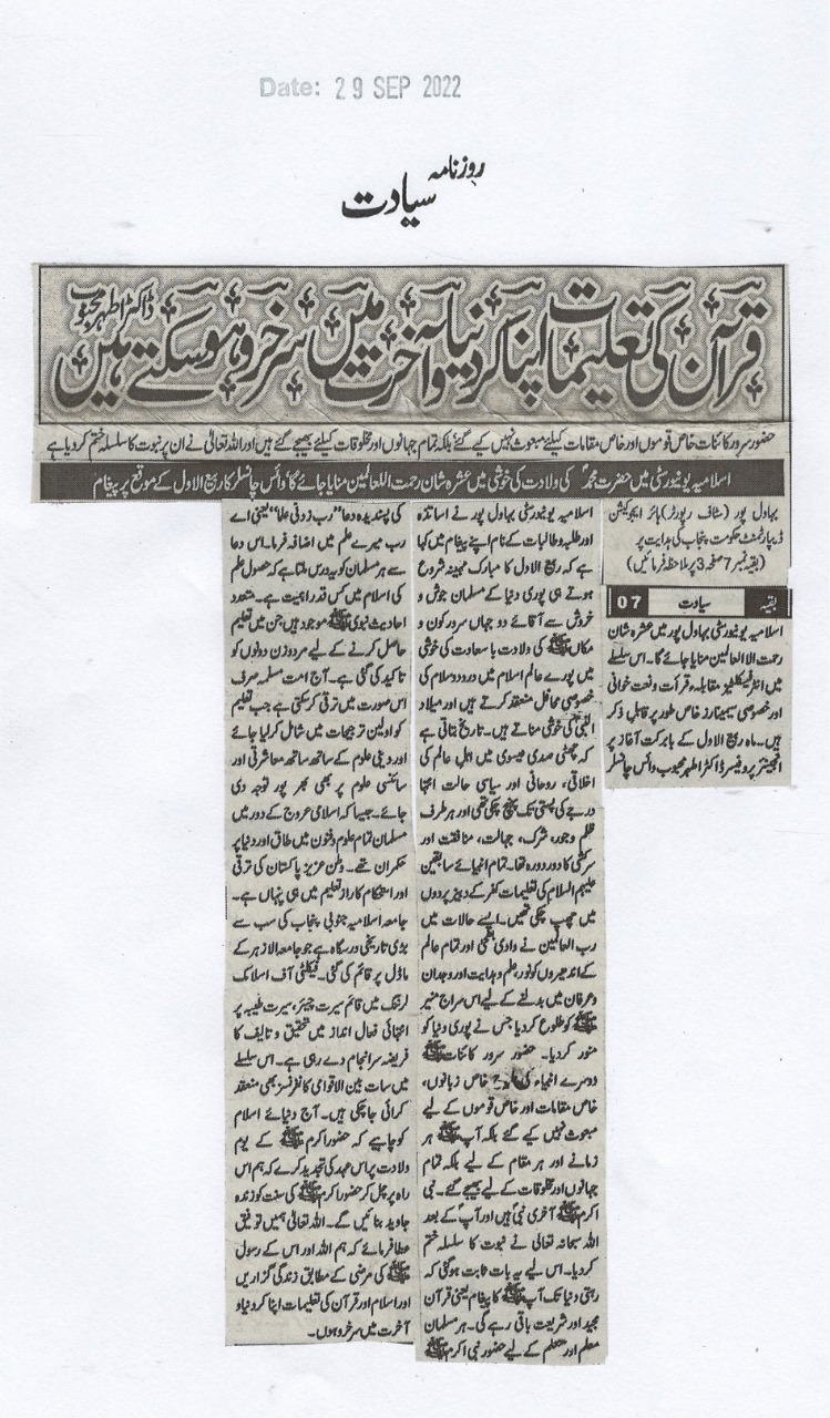 The Islamia University of Bahawalpur was established in the year 1975 by upgrading historical institute of the Jamia Abbasia.
