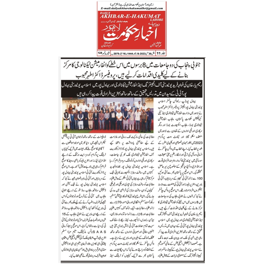 The Islamia University of Bahawalpur was established in the year 1975 by upgrading historical institute of the Jamia Abbasia.