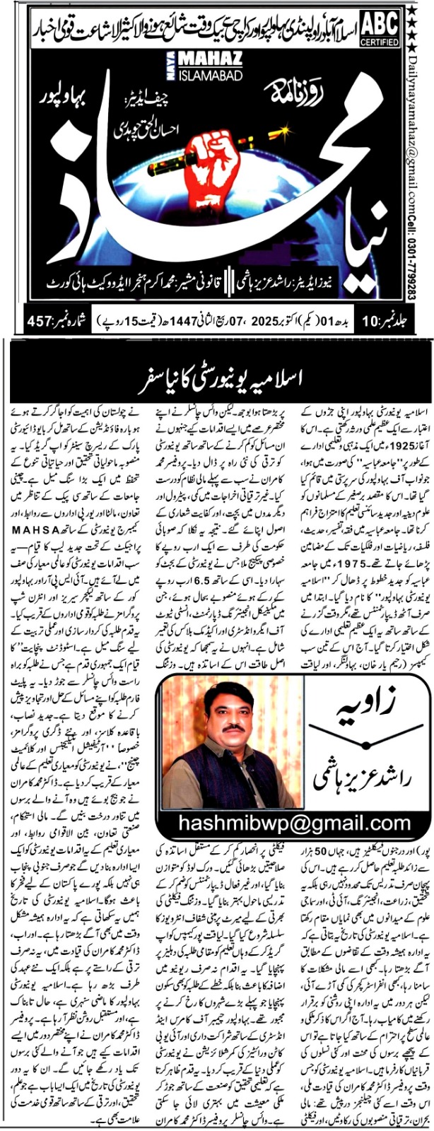 The Islamia University of Bahawalpur was established in the year 1975 by upgrading historical institute of the Jamia Abbasia.