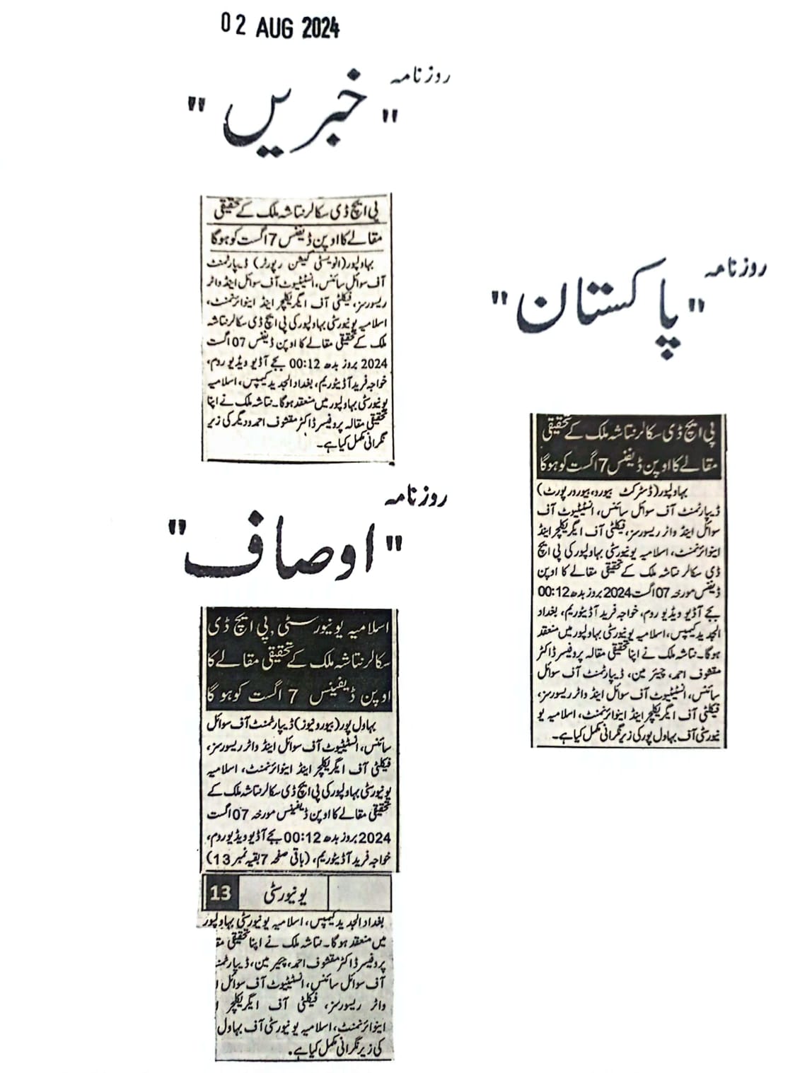 News Cuttings 02 August 2024