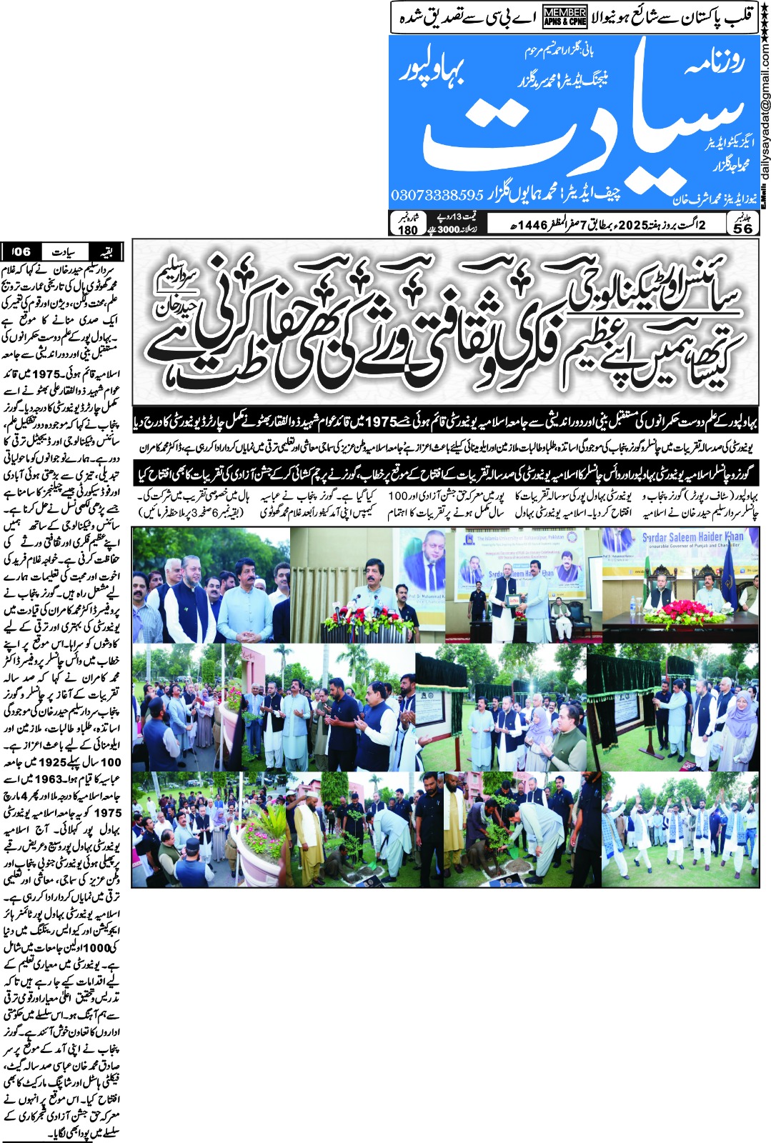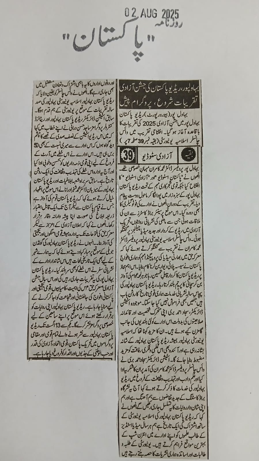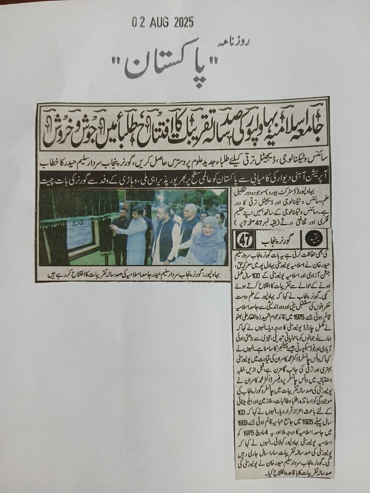The Islamia University of Bahawalpur was established in the year 1975 by upgrading historical institute of the Jamia Abbasia.
