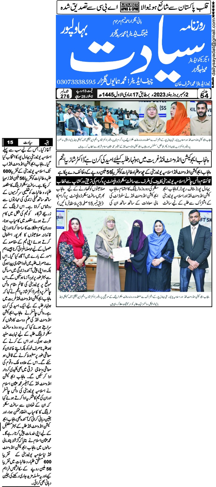 The Islamia University of Bahawalpur was established in the year 1975 by upgrading historical institute of the Jamia Abbasia.