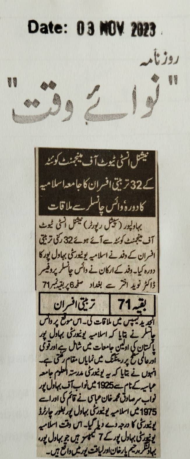 The Islamia University of Bahawalpur was established in the year 1975 by upgrading historical institute of the Jamia Abbasia.