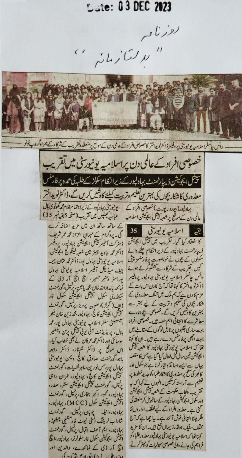 The Islamia University of Bahawalpur was established in the year 1975 by upgrading historical institute of the Jamia Abbasia.