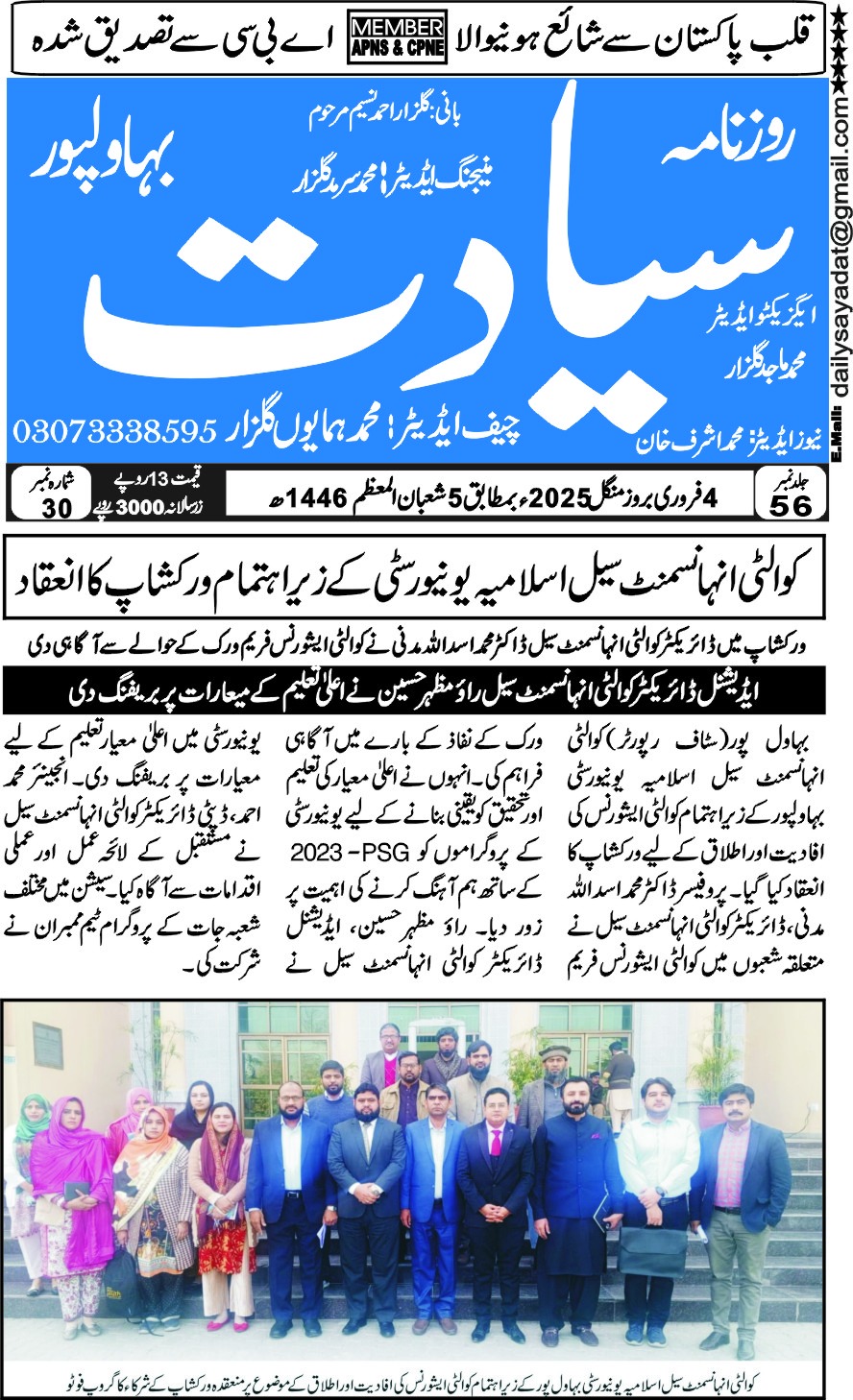 The Islamia University of Bahawalpur was established in the year 1975 by upgrading historical institute of the Jamia Abbasia.