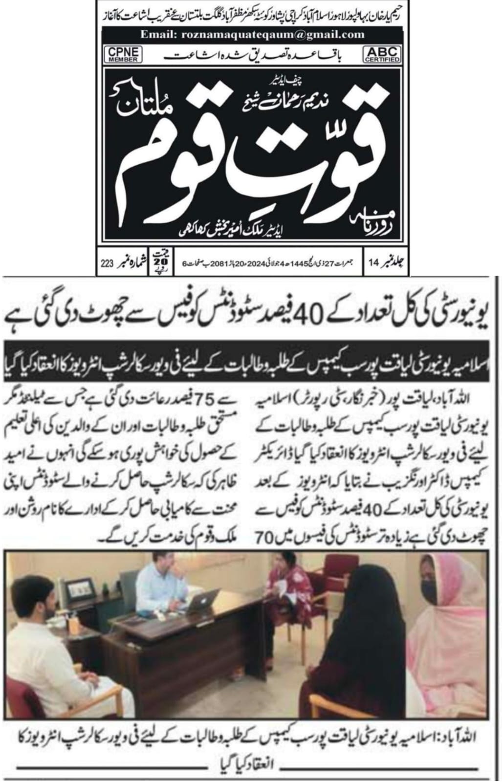 The Islamia University of Bahawalpur was established in the year 1975 by upgrading historical institute of the Jamia Abbasia.