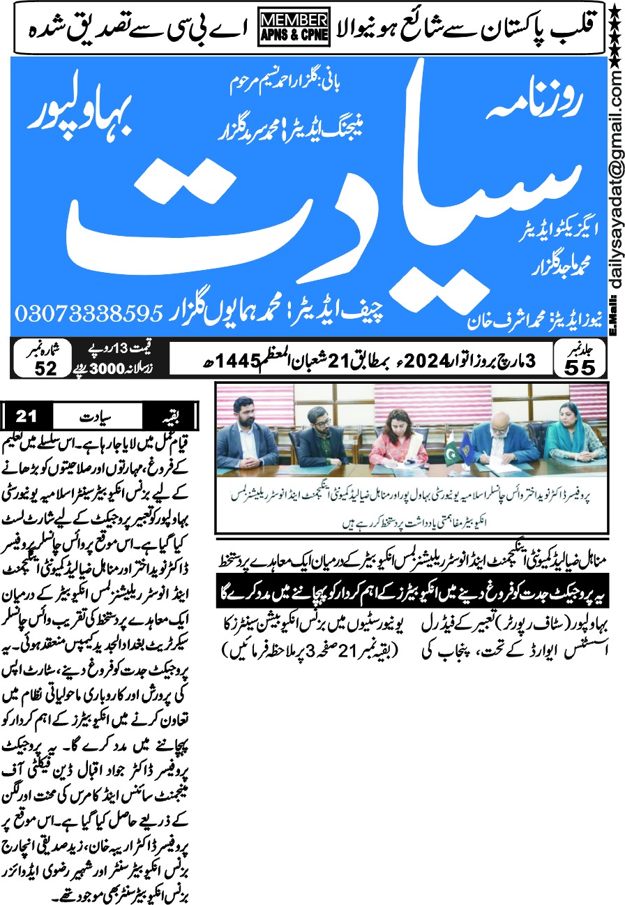 The Islamia University of Bahawalpur was established in the year 1975 by upgrading historical institute of the Jamia Abbasia.