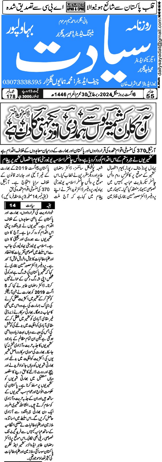 News Cuttings 06 August 2024