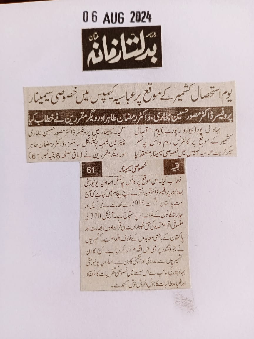 The Islamia University of Bahawalpur was established in the year 1975 by upgrading historical institute of the Jamia Abbasia.