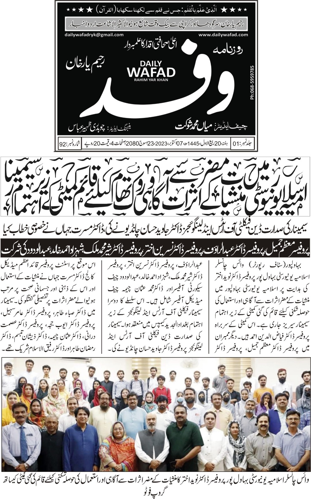 The Islamia University of Bahawalpur was established in the year 1975 by upgrading historical institute of the Jamia Abbasia.