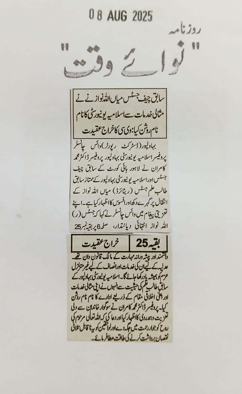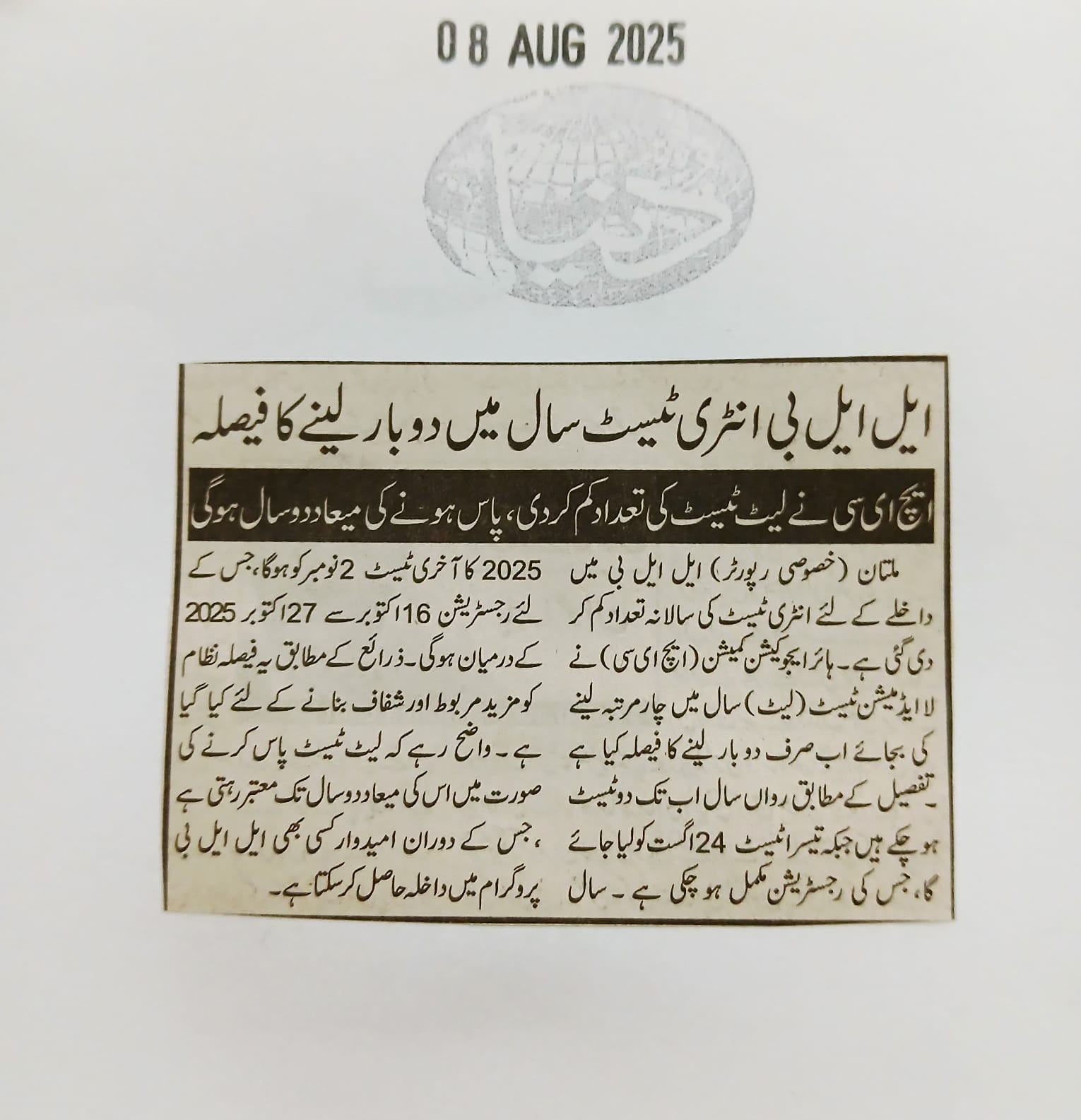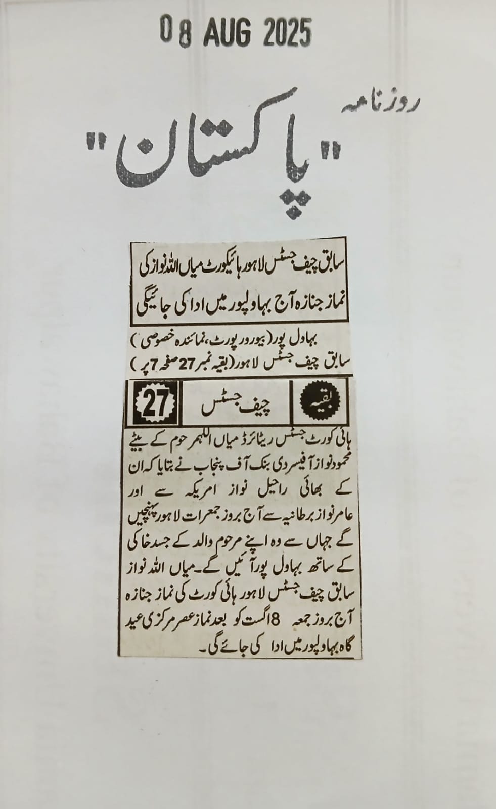 News Cuttings 08 August 2025