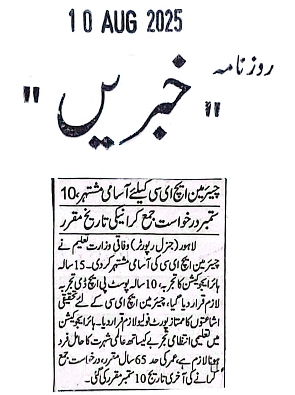News Cuttings 10 August 2025