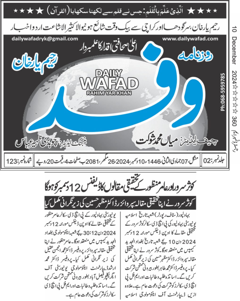 The Islamia University of Bahawalpur was established in the year 1975 by upgrading historical institute of the Jamia Abbasia.