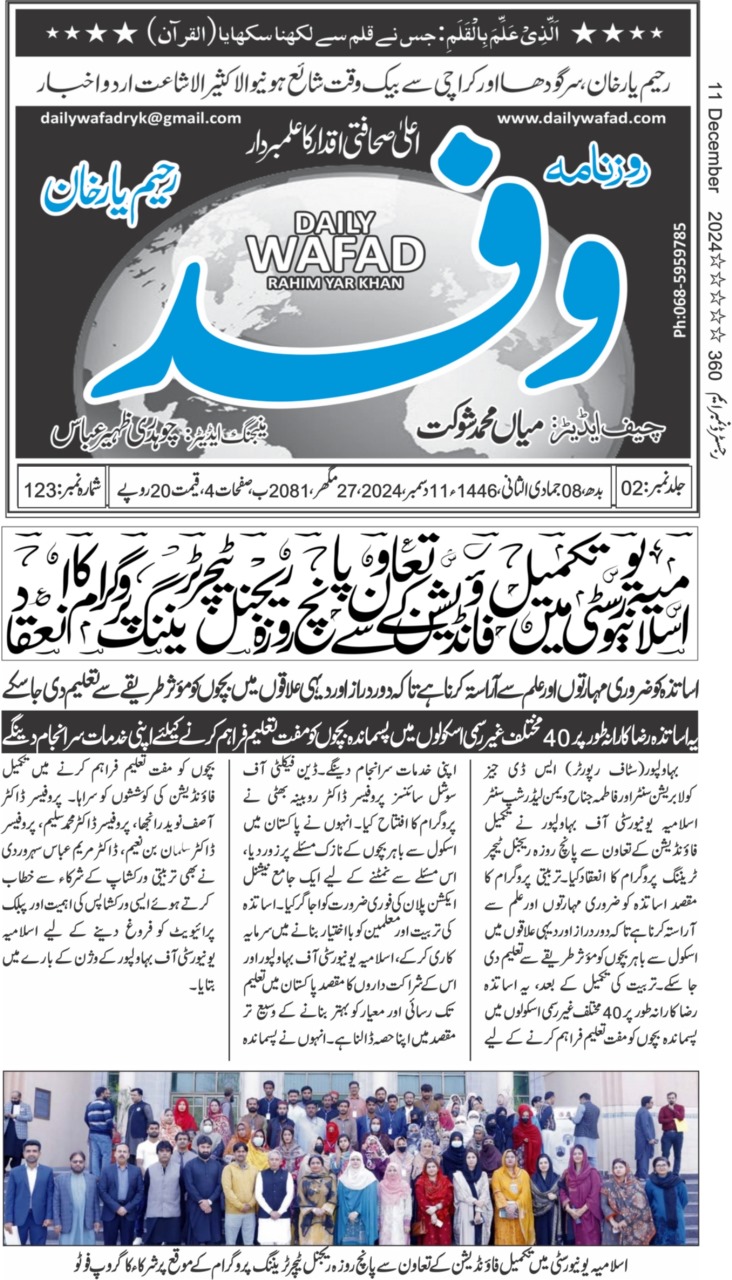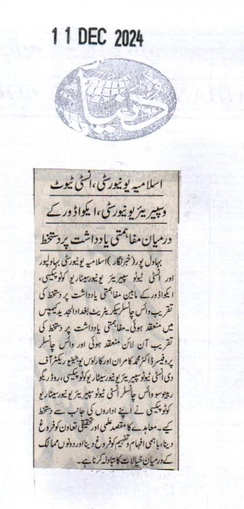 The Islamia University of Bahawalpur was established in the year 1975 by upgrading historical institute of the Jamia Abbasia.