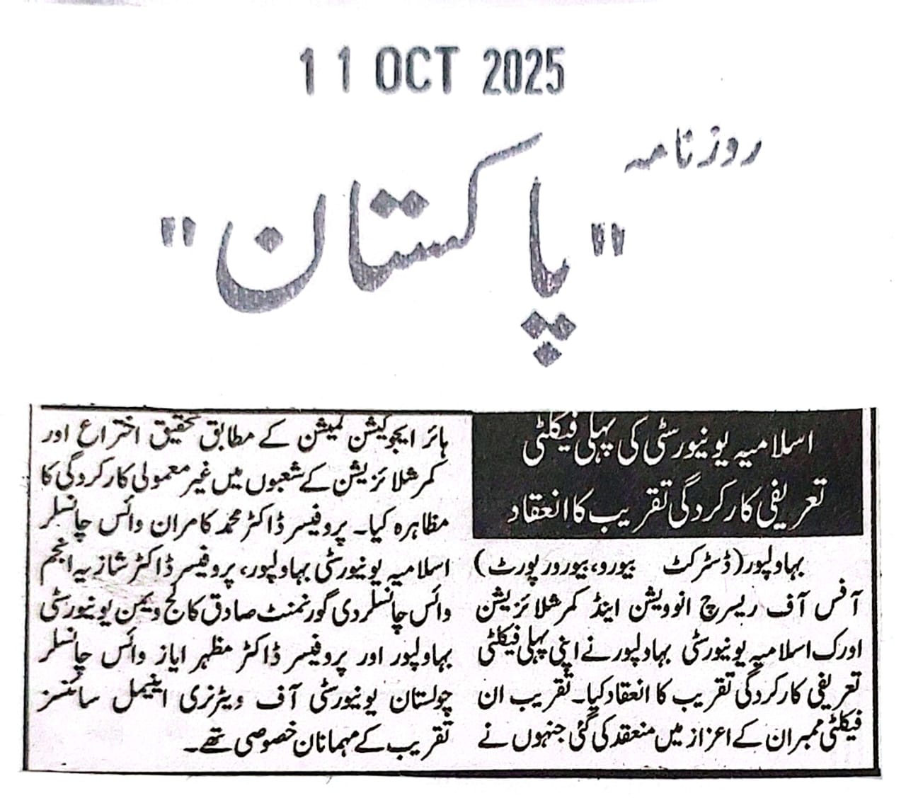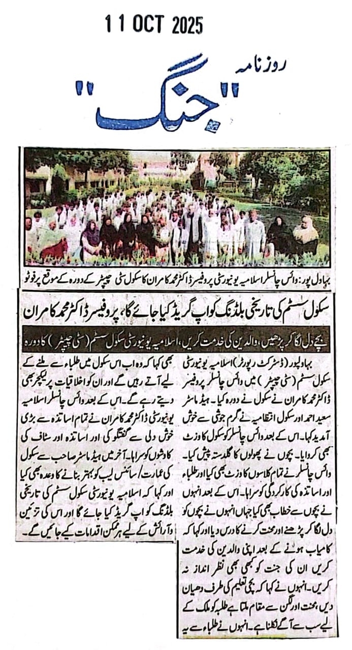 The Islamia University of Bahawalpur was established in the year 1975 by upgrading historical institute of the Jamia Abbasia.