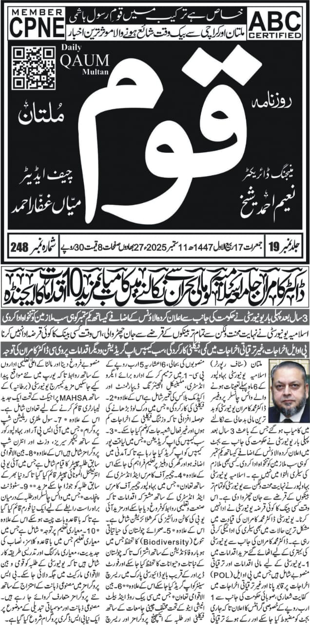 The Islamia University of Bahawalpur was established in the year 1975 by upgrading historical institute of the Jamia Abbasia.