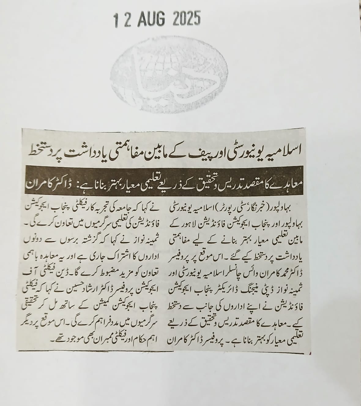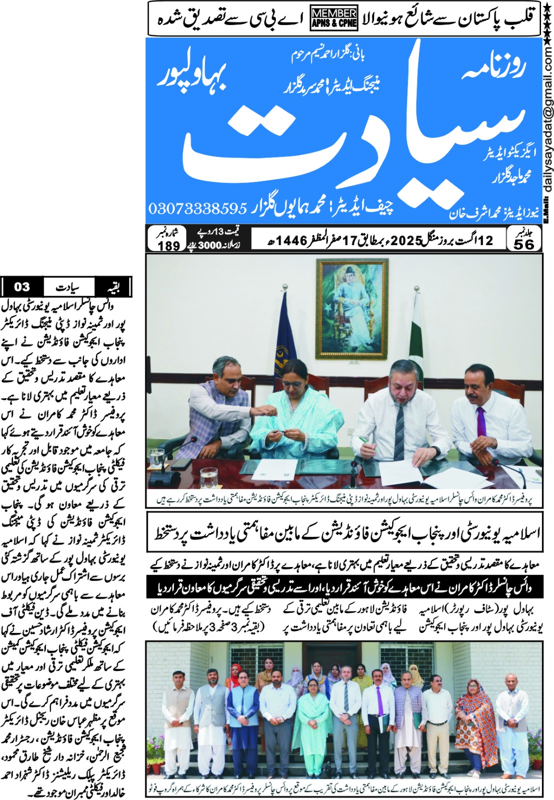 The Islamia University of Bahawalpur was established in the year 1975 by upgrading historical institute of the Jamia Abbasia.