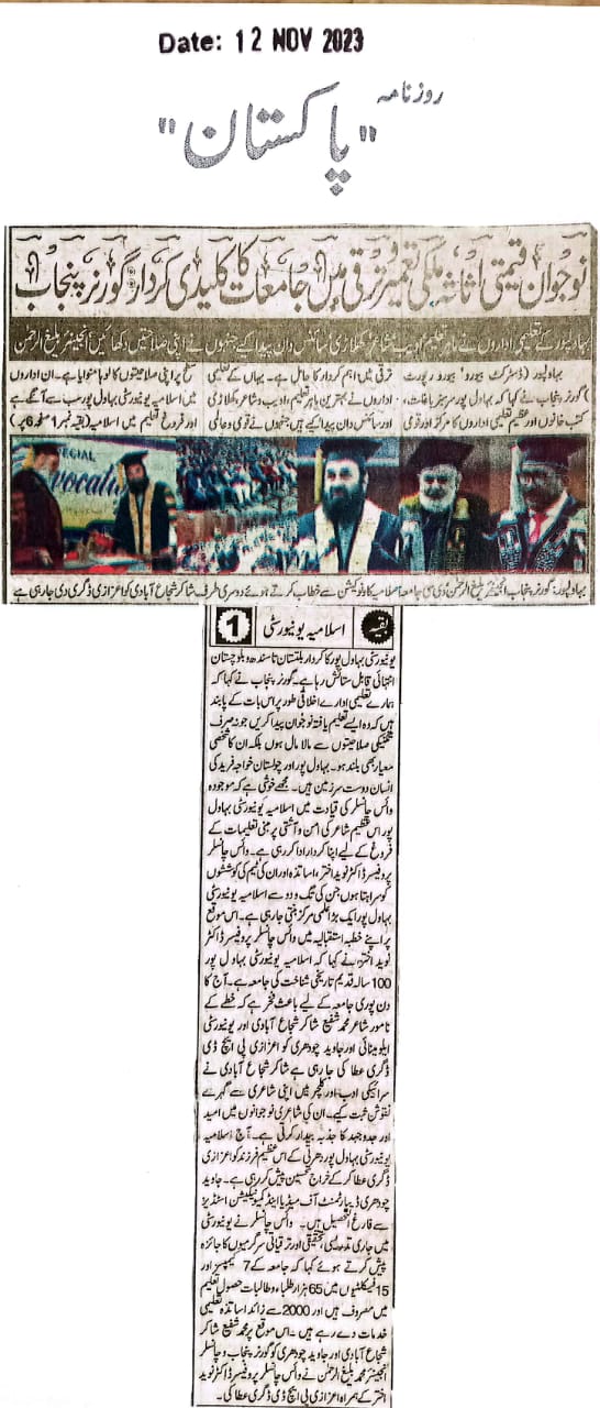 The Islamia University of Bahawalpur was established in the year 1975 by upgrading historical institute of the Jamia Abbasia.