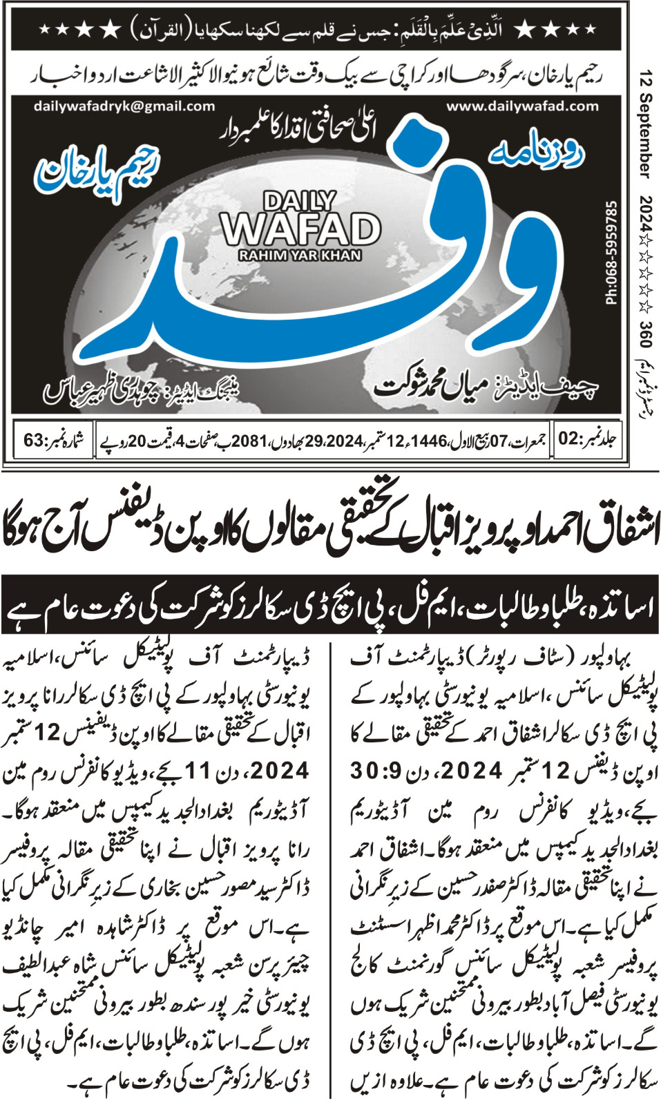 News Cuttings 12 September 2024