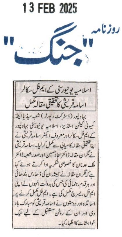 The Islamia University of Bahawalpur was established in the year 1975 by upgrading historical institute of the Jamia Abbasia.